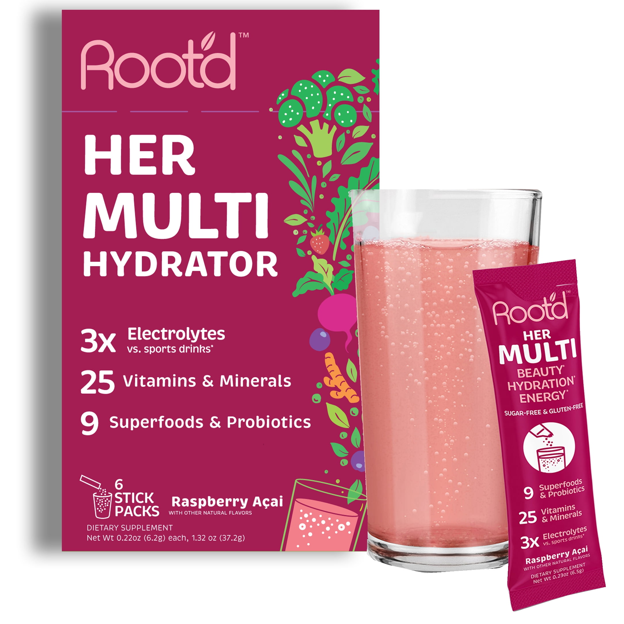 Root’d – Her Multi Hydrator – Essential Multivitamin + Sugar-Free Electrolytes for Women – 6 Effervesant Drink Mix Packets
