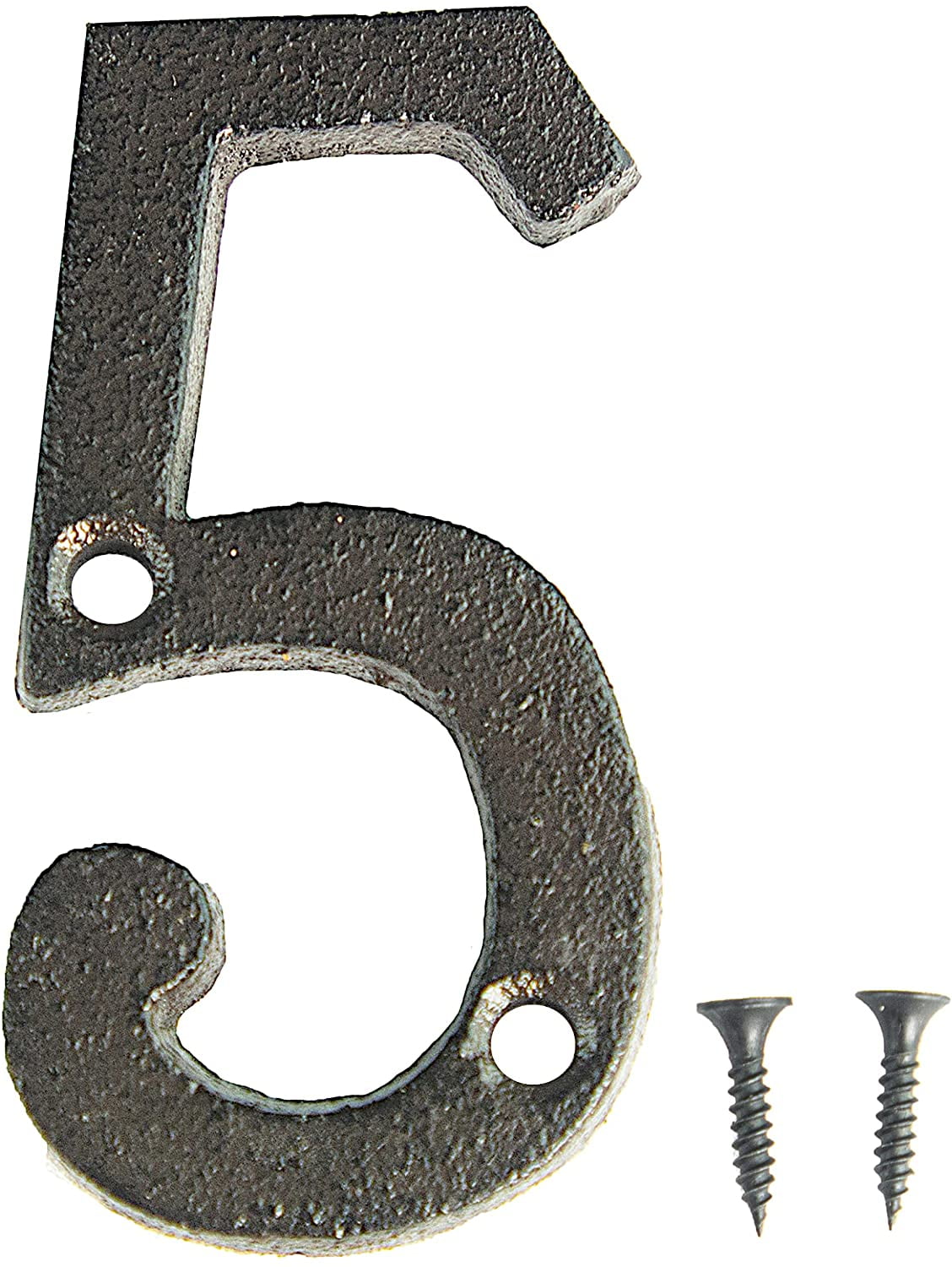 Rustic Cast Iron Address House Number Lettering 3 x 1.5 Inch (Number 5) Mounting Hardware Included 1pc