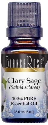 Sage, Clary Pure Essential Oil (0.50 oz, ZIN: 305092): Clary Sage – ( Salvia sciarea ) – Plant Family – Lamiaceae (Labiatae). – Synonyms – Clary, clary wort, clear eye, common clary, see bright, eye bright, muscatel sage, orvale, toute-bonne. – Description and Distribution – A strongly aromatic, shrubby herb reaching up to 3 feet (1 m) with spikes of white, violet or pink flowers. Clary is native to the Mediterranean, but is cultivated worldwide. The highest quality oil is produced in France, Britain and Morocco. – Extraction Method – Steam distillation of the flowering tops and leaves. – Nature of the Oil – A colourless to pale yellow liquid. The aroma is sweetly herbaceous and nutty with a floral tinge. Its odour effect is uplifting and relaxing; a reputed aphrodisiac. – Main Constituents – Linalyl acetate, linalol, pinene, myrcene, sclareol, phellandrene. – Properties – Anti- – Essential Oils by Bianca Rosa are 100% Pure Natural Essences derived from the highest quaEssential Oils by Bianca Rosa are 100% Pure Natural Essences derived from the highest quality fruits, flowers, leaves, spices, herbs and roots. Our essential oil distillers and growers are located around the world, operating ethically, organically and che