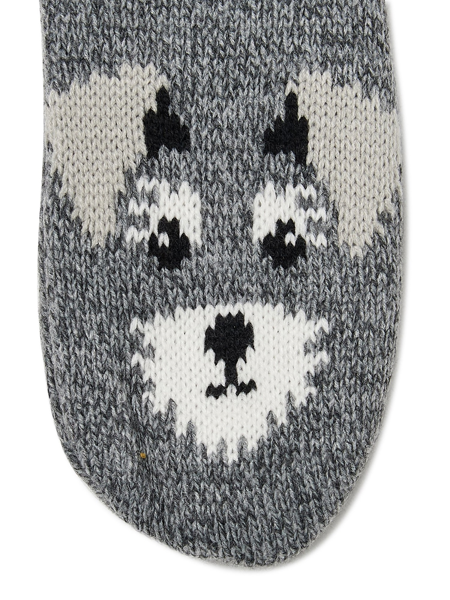 Stay cute and cozy in these knit critter slipper socks from Secret Treasures! Featuring a feathered geo design with adorable animal print, these lounge-worthy socks are a comfortable pair to slip on and keep your feet covered and warm from day to night. Don’t forget: gripper bottoms help prevent you from slipping.
