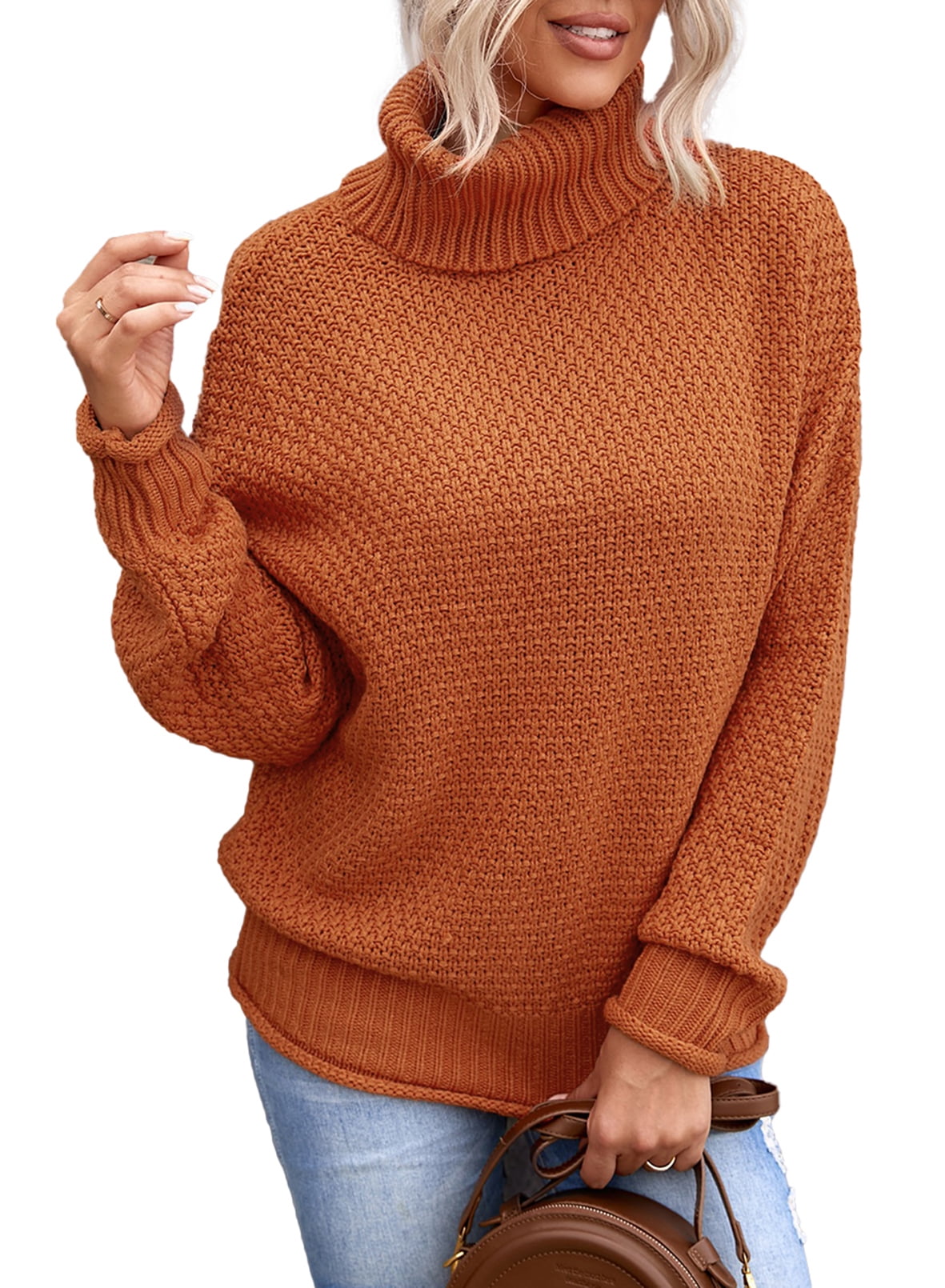 Sidefeel Women Winter Chunky Sweater Casual Long Sleeve Turtleneck Solid Color Drop Shoulder Cable Knit Pullovers, the solid color sweater top is beautiful with turtleneck, long sleeves, stylish slouchy version. You are absolutely obsessed with the variety matching style. This knitted pullover top is not only comfortable, but also has a great, relaxed fit. Pair this pretty must-have with your favorite denim and sneakers for a polished look everyone will notice. Choose your fond color and the right size now.