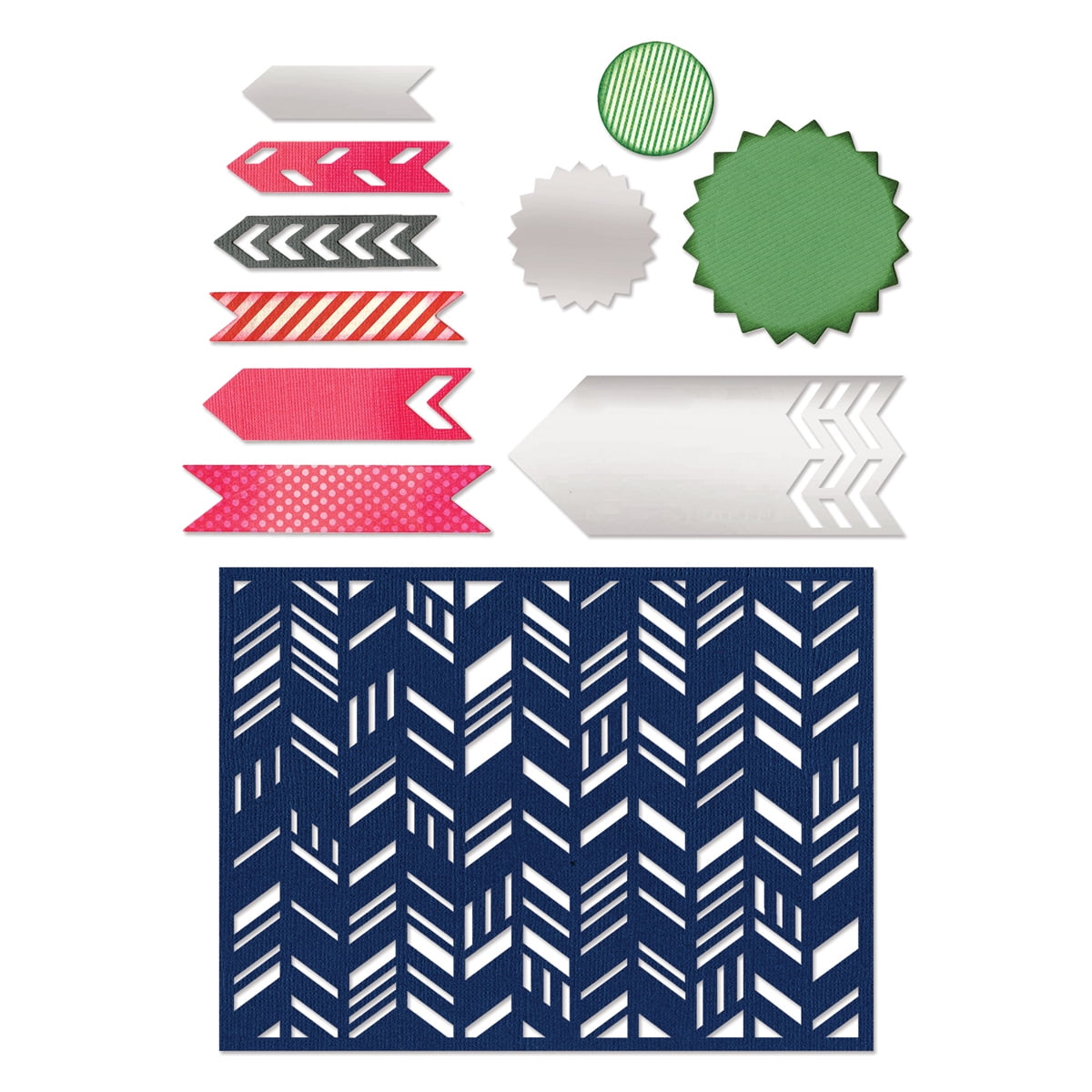 Sizzix Thinlits Dies 1/Pkg -Fancy Chevron Card Front/Layering ShapSizzix-Thinlits Dies. Thinlit dies offer a variety of affordable solo options or multi die options. Thinlits are easy to use and are compact and portable. These dies are compatible with Sizzix BIGkick BigShot Vagabond and Big Shot Pro. This package contains one 4-3/4×6-3/8 inch die. Design: Fancy Chevron Card Front/Layering Shapes. Designer: Jen Long. Imported.