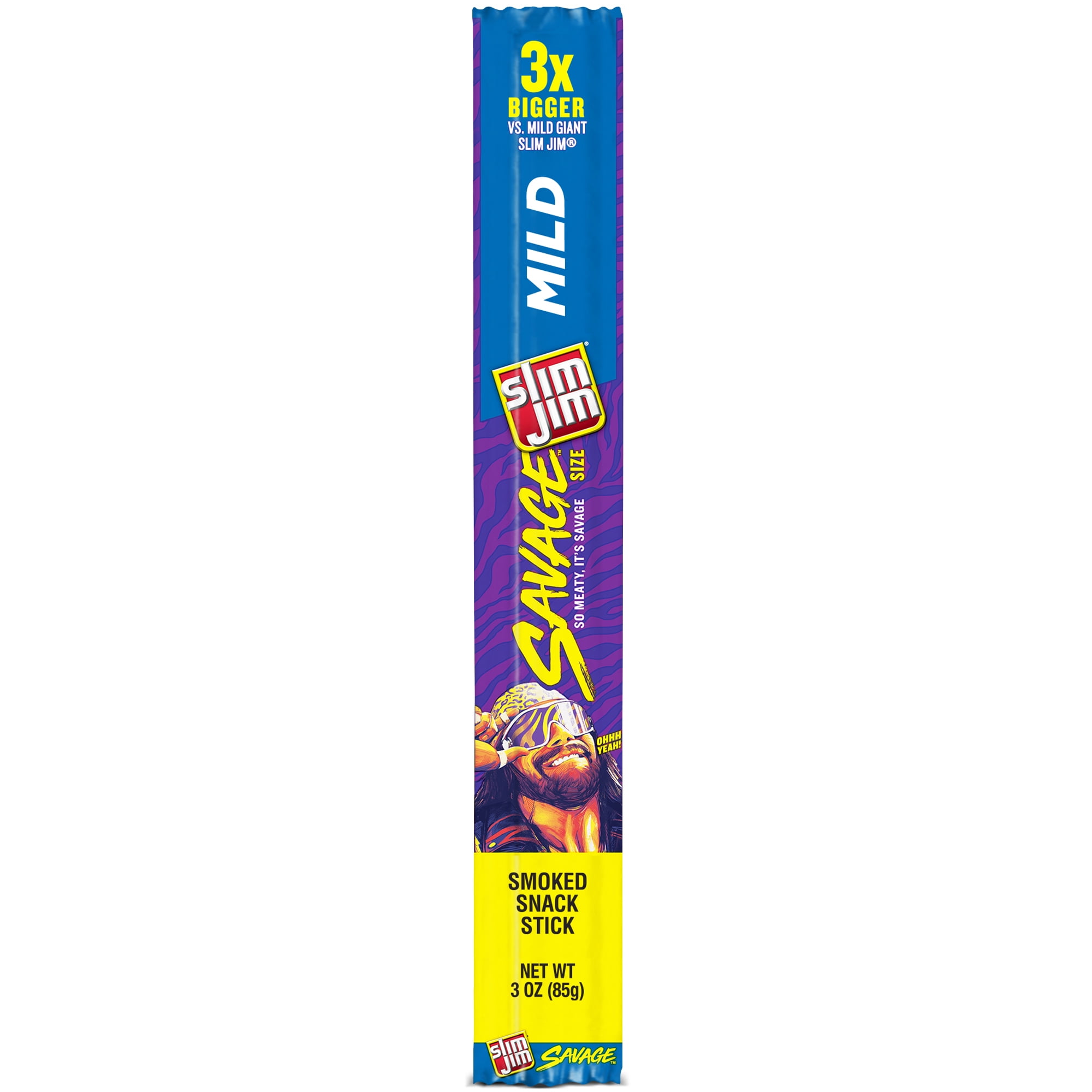 Slim Jim Savage Mild Flavor Smoked Meat Snack Sticks, Keto Friendly Snack, 3 oz