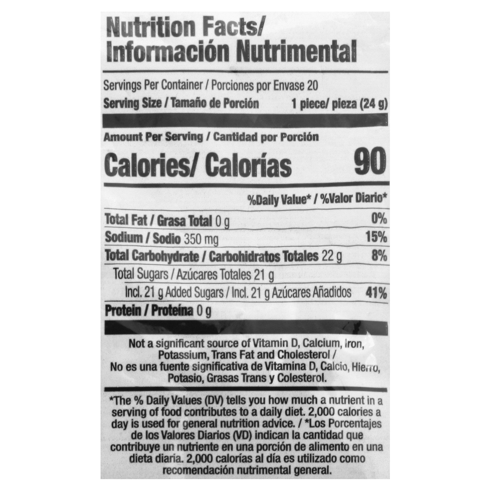 - 5-layer sweet and spicy candy – chili, lime, pineapple, orange, and a gum center