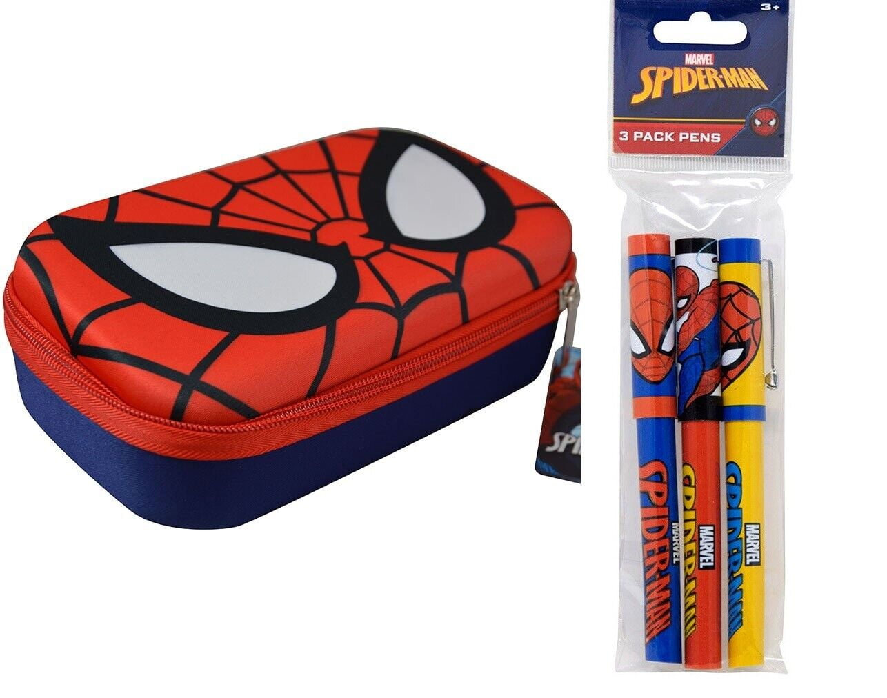 Spiderman Molded EVA Pencil Case With 3pk Pens in Poly Bag with Header