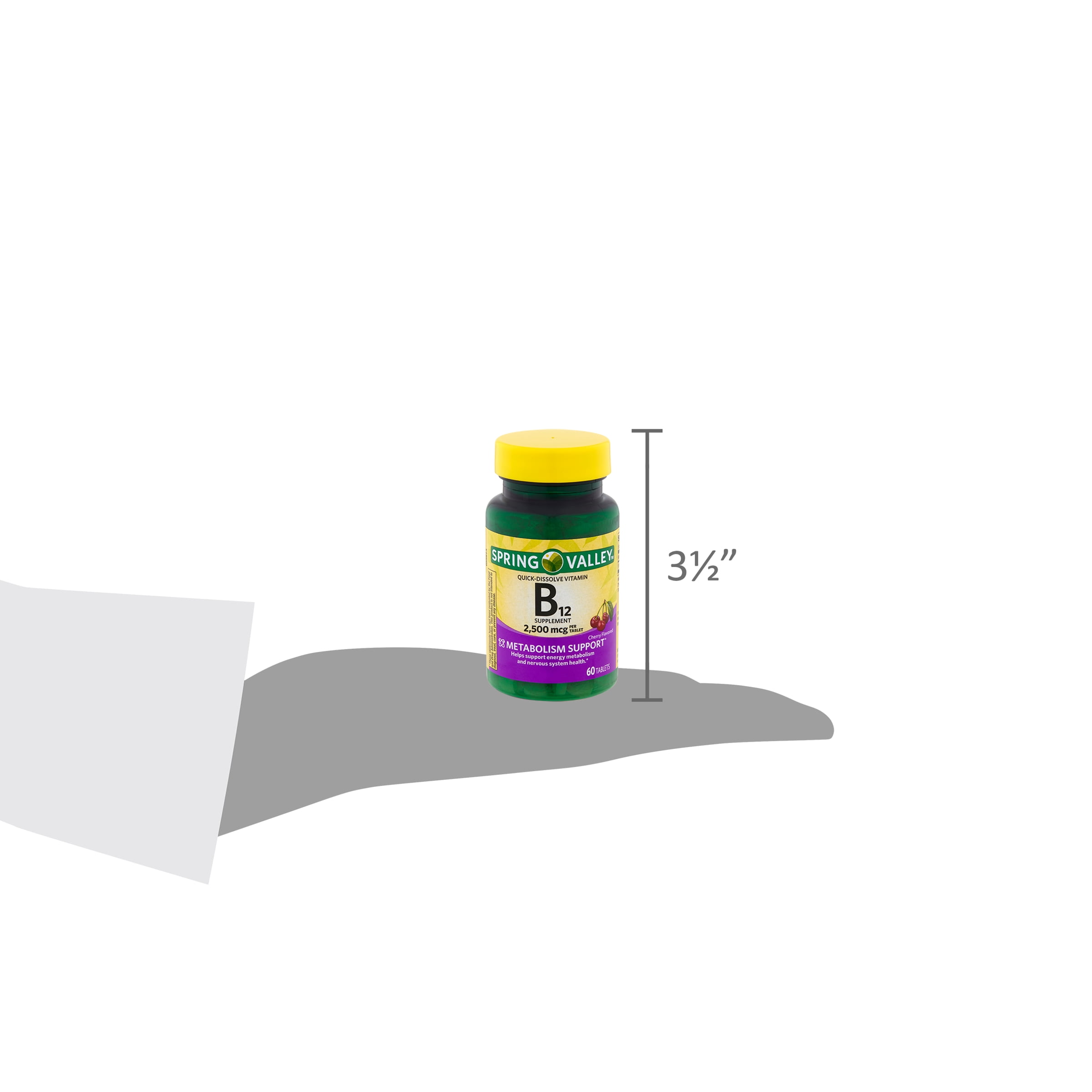 Spring Valley Vitamin B12 Quick-Dissolve Tablets Dietary Supplement, 2,500 mcg, Cherry Flavor, 60 Count:
