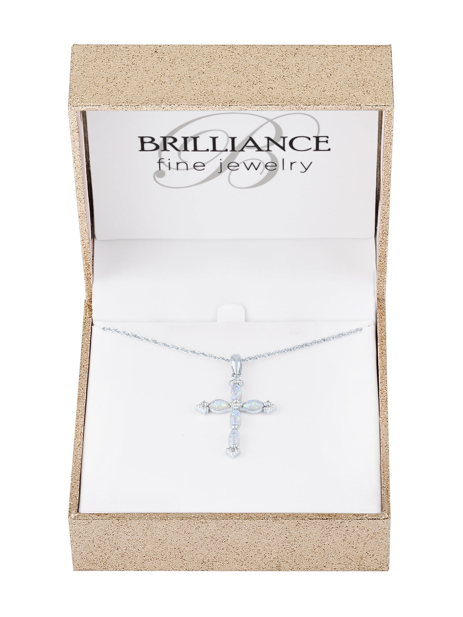Brilliance Fine Jewelry Sterling Silver Plated Simulated Opal and CZ Cross Pendant
