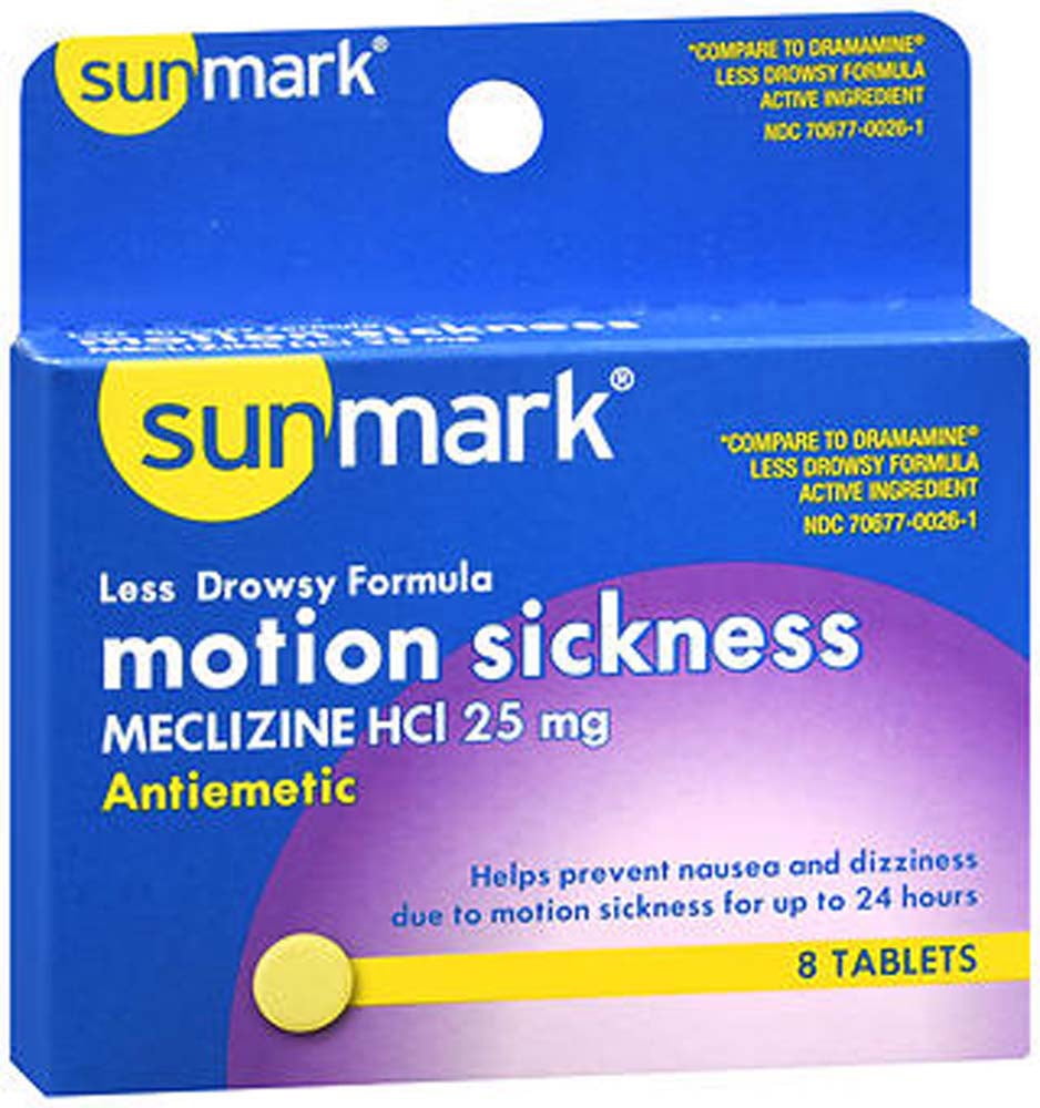 Sunmark Motion Sickness 25 mg Tablets Less Drowsy Formula – 8 ct