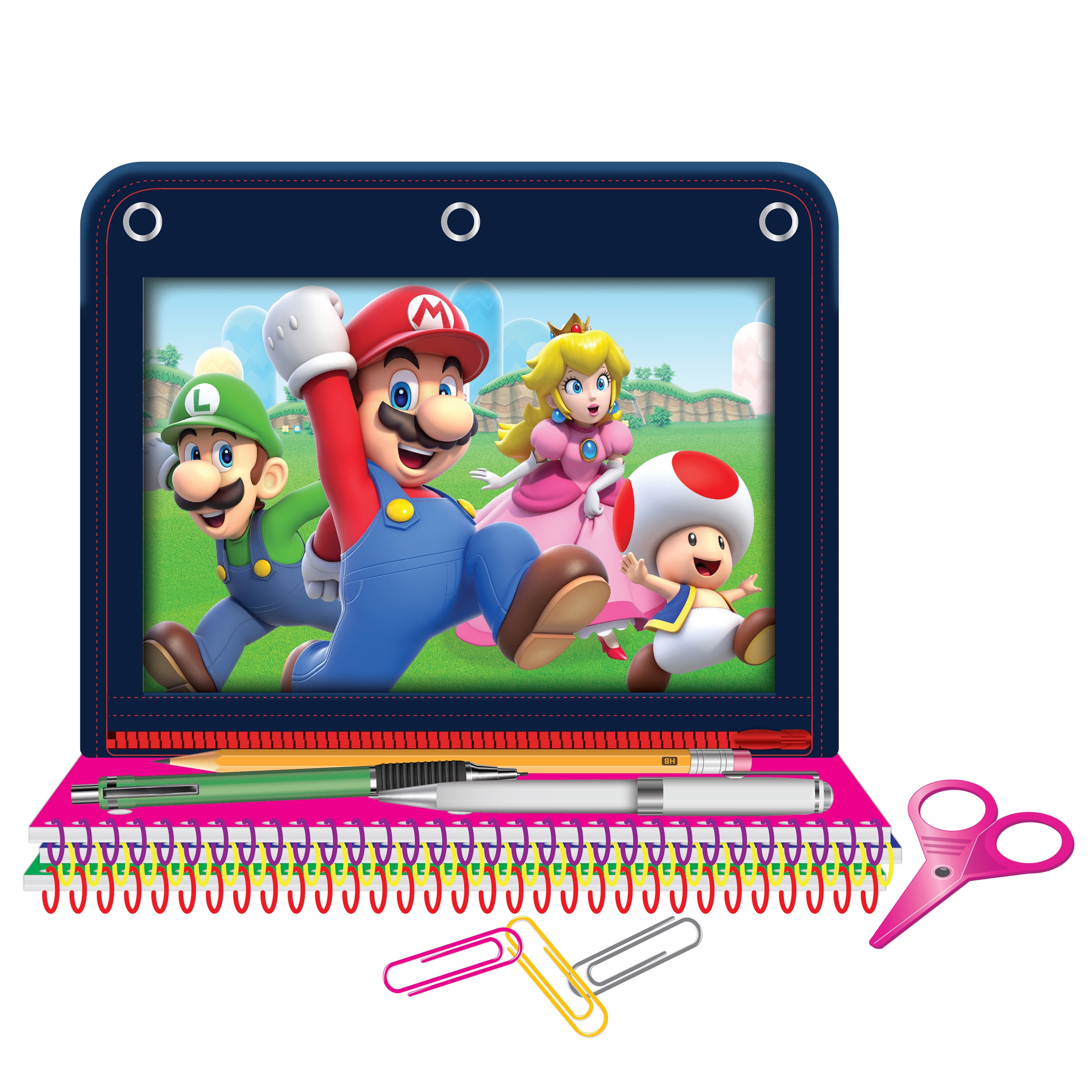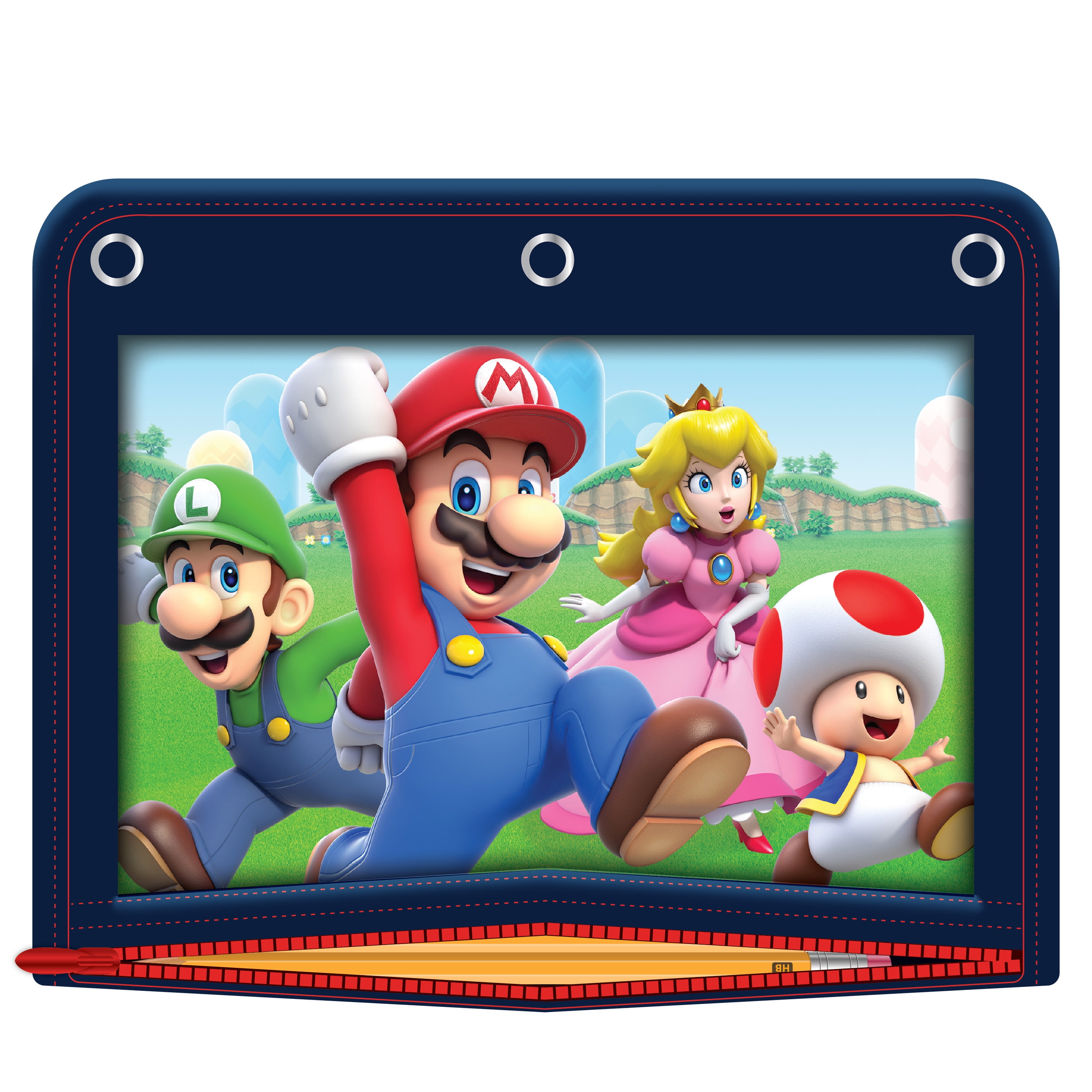 Super Mario Bros. Multicolor 3-Ring Pencil Case, 10.5-in W by 8.25-in H