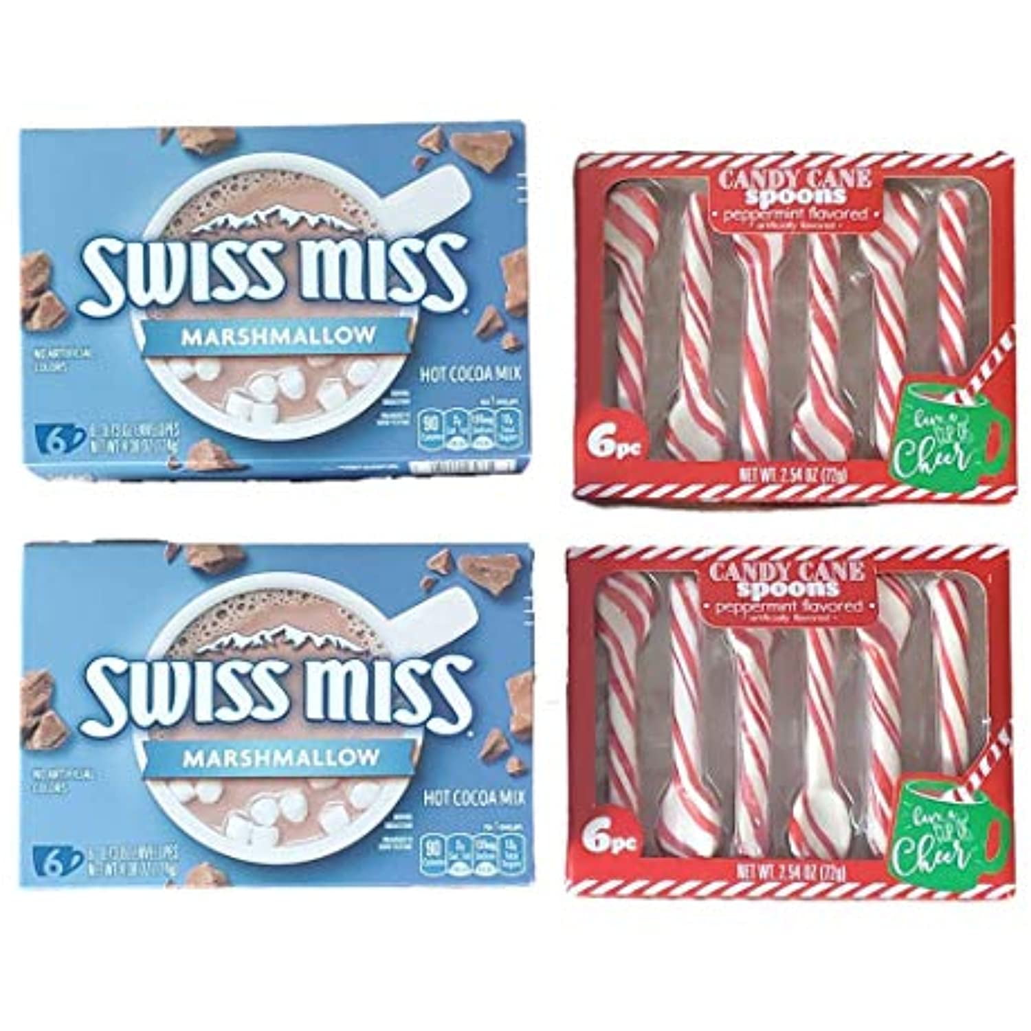 Swiss Miss Marshmallow Hot Chocolate (12) & Candy Cane Peppermint Spoons (12) Bundle