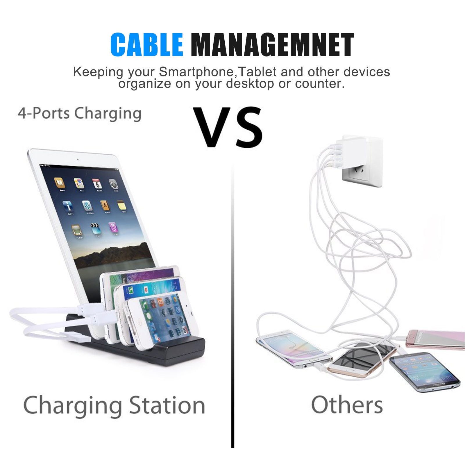 - 1 Station for All Devices: No messy wires, clean and tidy