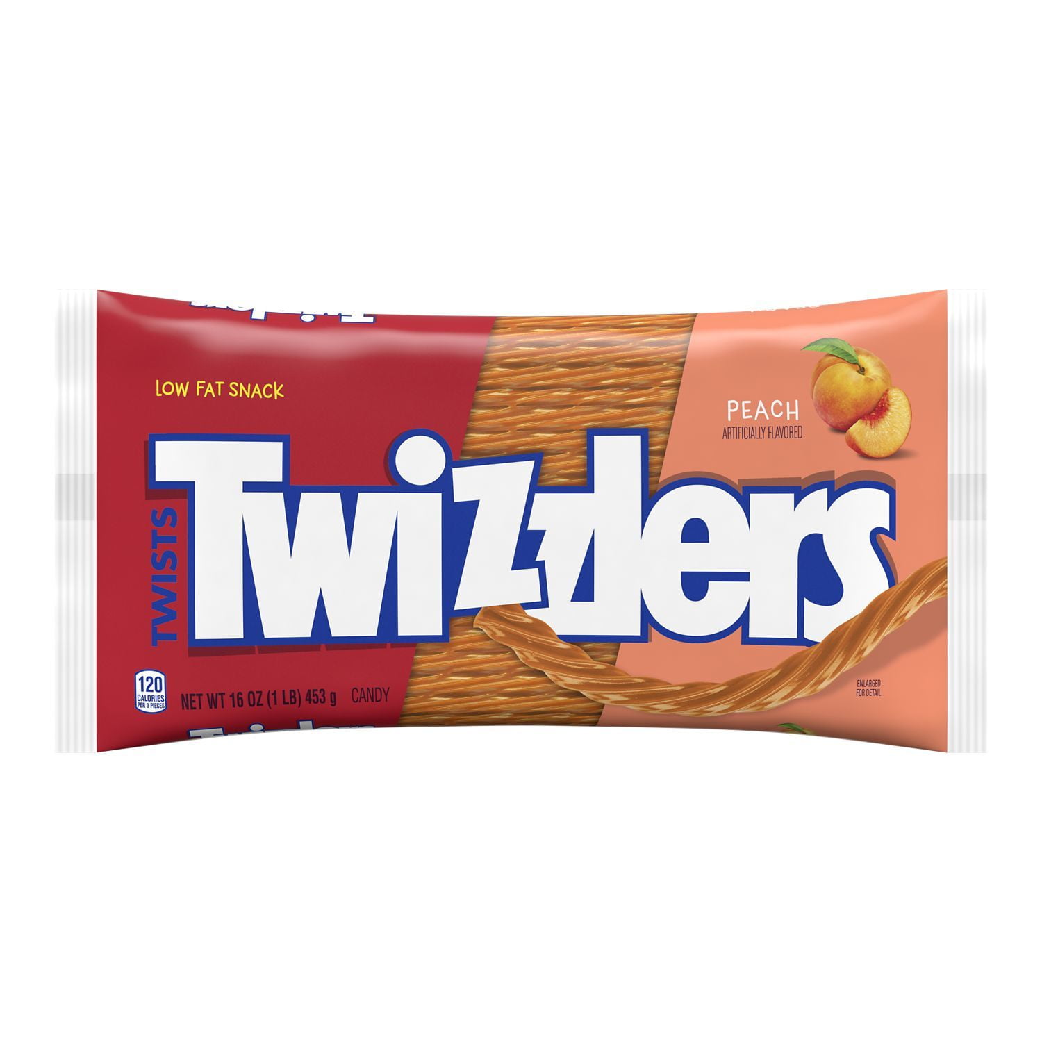 TWIZZLERS, Twists Peach Flavored Chewy Candy, Low Fat Snack, 16 oz, Bag