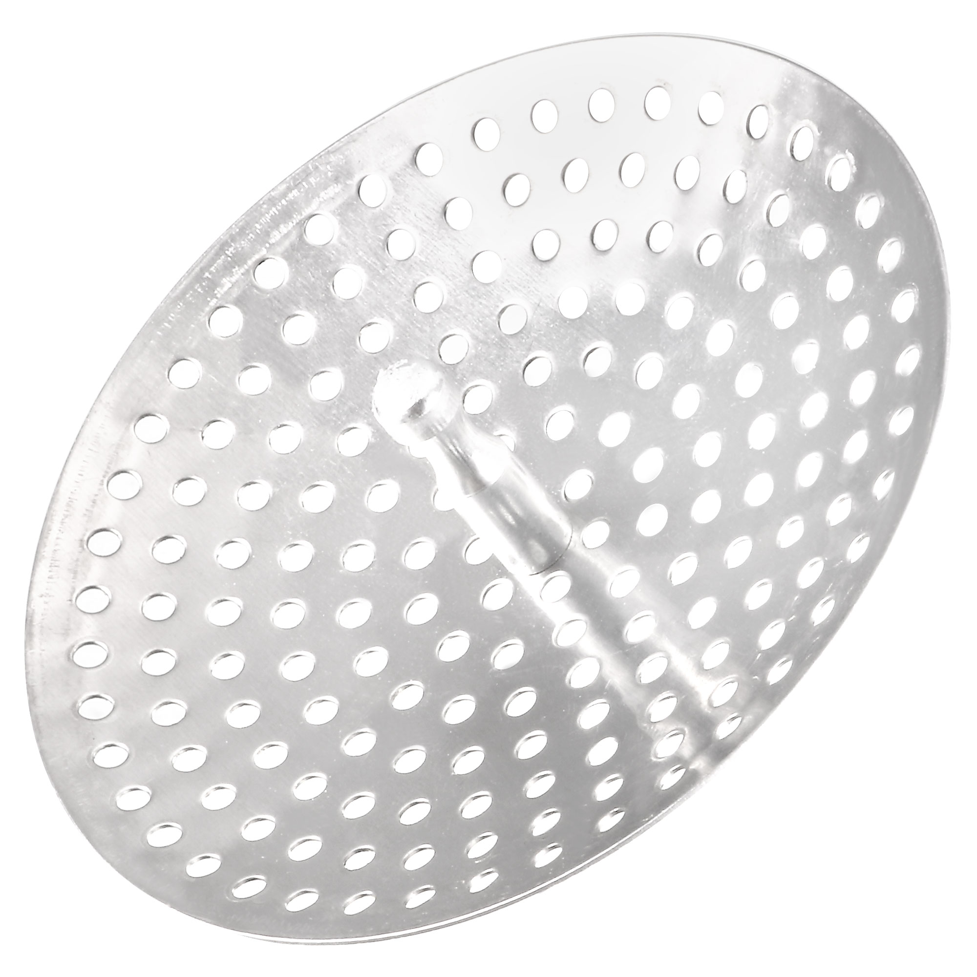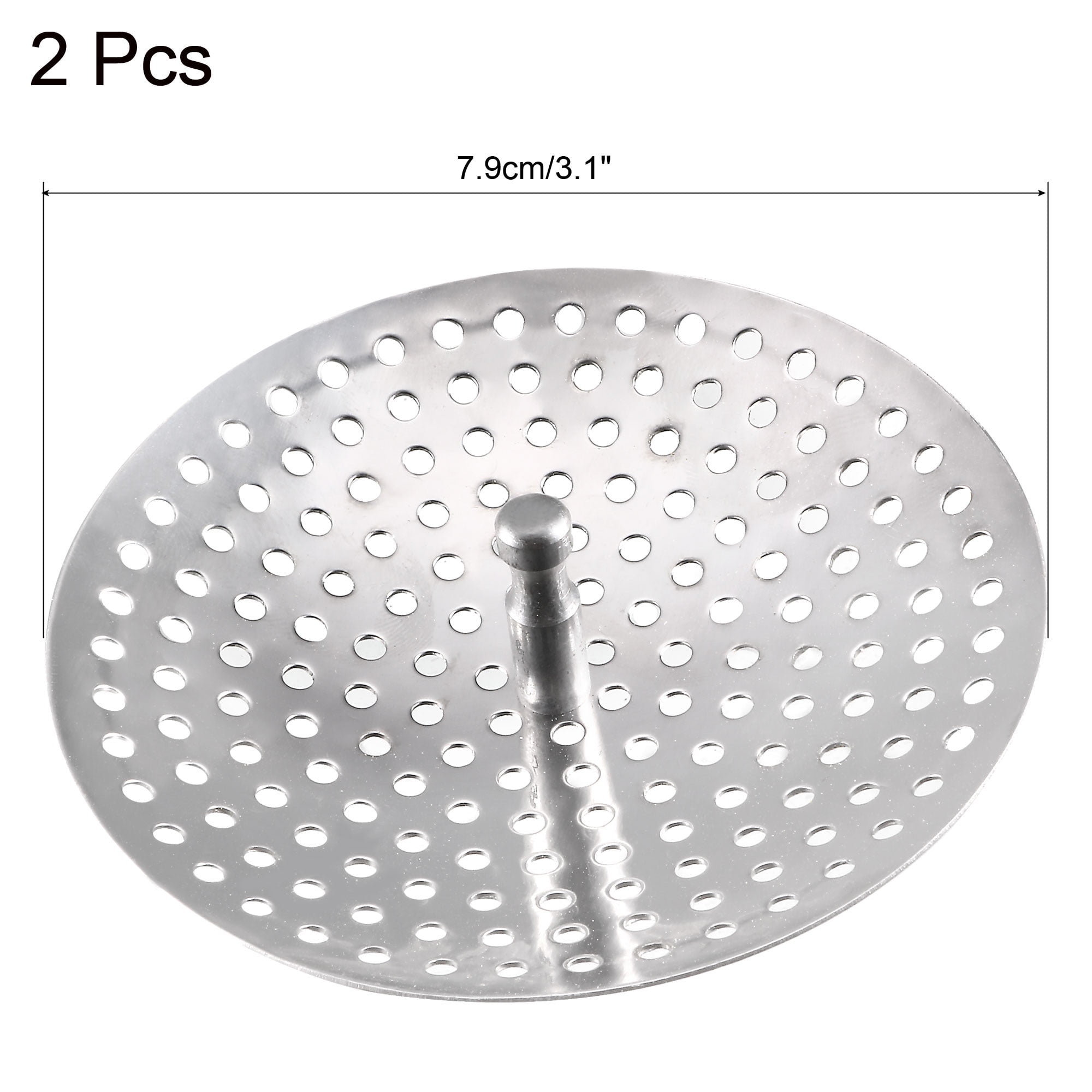 The Strainer is made of stainless steel and perforated hole design, stainless steel construction for reliable, rust-free more healthy. 7.9cm Dia Flat Stainless Steel Round Design Sink Strainer Stopper. Micro-perforations Design Efficient anti-clogging shield lets liquid flow seamlessly into the drain and blocks garbage, the strainer lets water pass through but not other one-off goods, such as hair, food debris, paper, etc. The sink strainer is easy to use, empty and clean. This sink strainer will help keep the drains flowing freely and easy catcher hair, You are no more worry about the bathroom hair clogging problem.Uxcell Flat Stainless Steel Round Design Sink Strainer Stopper 7.9cm Dia Silver 2pcs