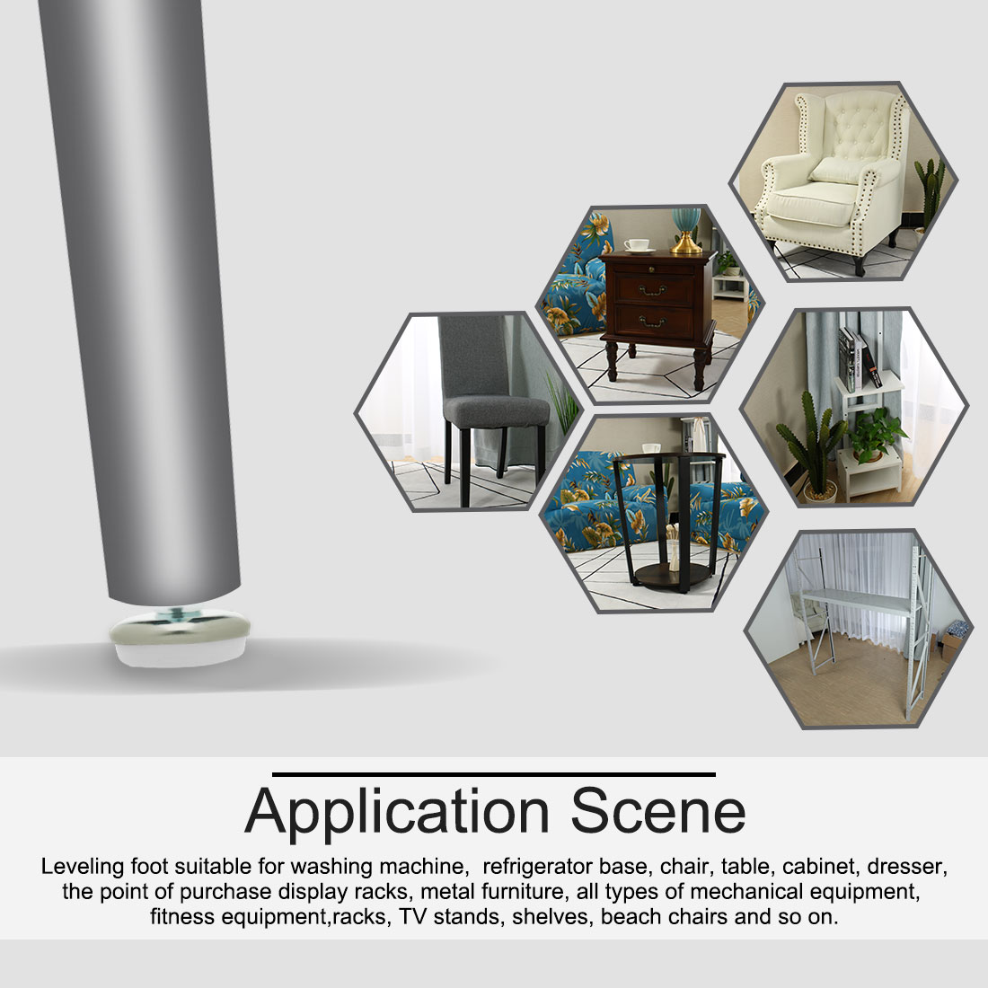 The adjustable leveling foot is for office or household furniture even industrial machine with threaded sockets. Such as mechanical equipment, fitness equipment, racks, TV stands, table, cabinet, shelves, beach chairs, desk and so on.