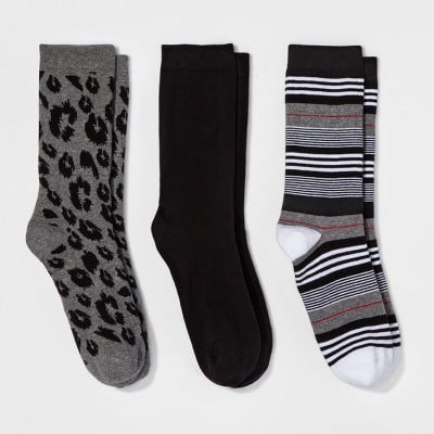 Women’s Animal Print 3pk Crew Socks – A New Day Gray/Black One Size