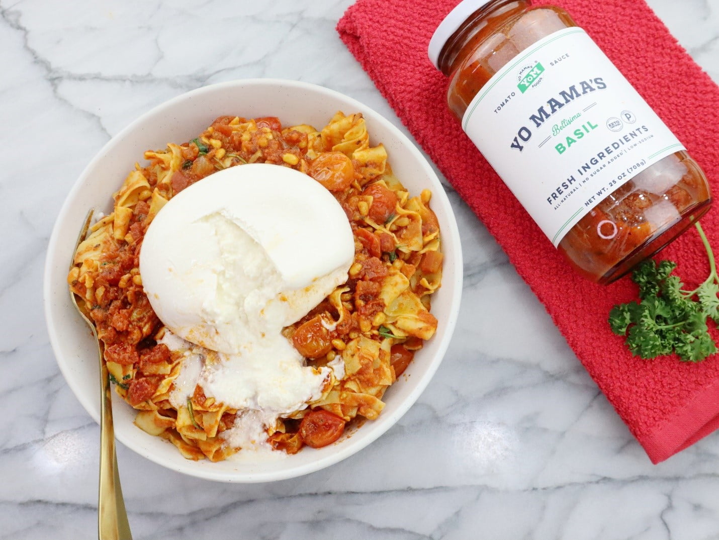 Yo Mama’s Foods Gluten-Free, Keto, Tomato Basil Pasta Sauce, 25 oz Jar: