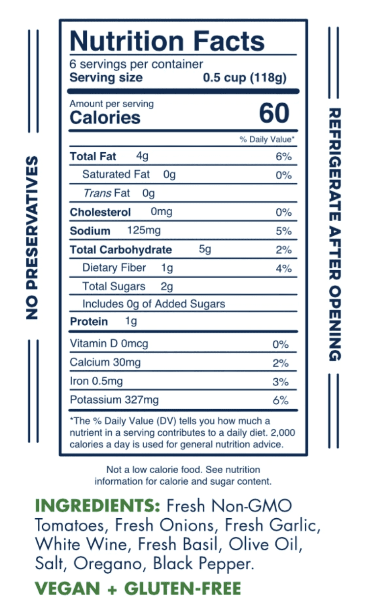 Handcrafted and slow-simmered with vine-ripened non-GMO Tomatoes, premium Italian Olive Oil, fresh hand-cut basil, and minced garlic and onions; our vegan, all-natural recipe was carefully designed to deliver an authentic Old World culinary experience right to your very kitchen. With only two grams of sugar per serving, our customers report using our gourmet natural pasta sauce as part of their Keto, Paleo, Whole 30 and Low Carb Diets. Unlike the competition, our sauces are made from only whole, natural ingredients, so you can rest assured that they are as slimming and healthy as they are indulgent.