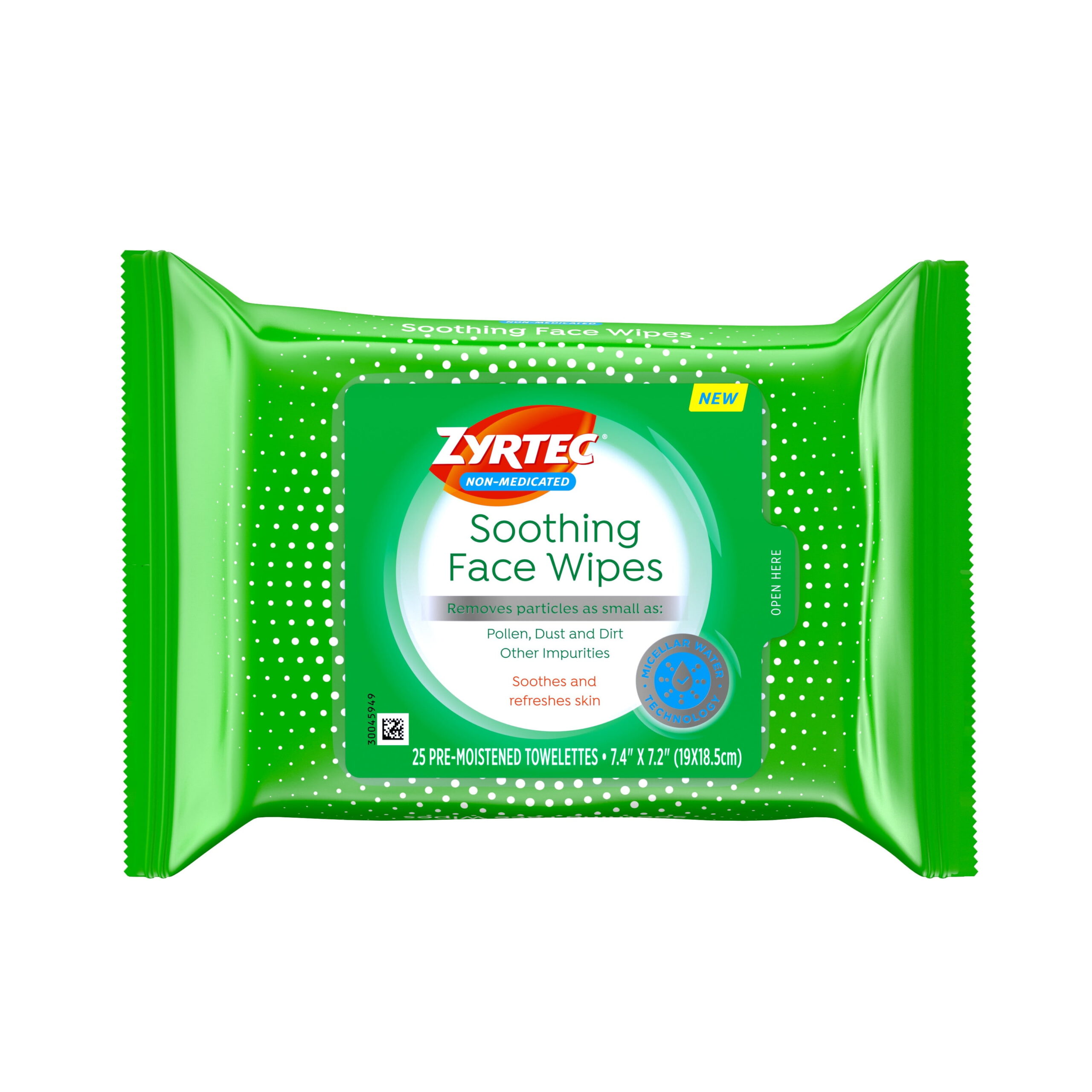 Zyrtec Soothing Non-Medicated Face Wipes with Micellar Water, 25 ct