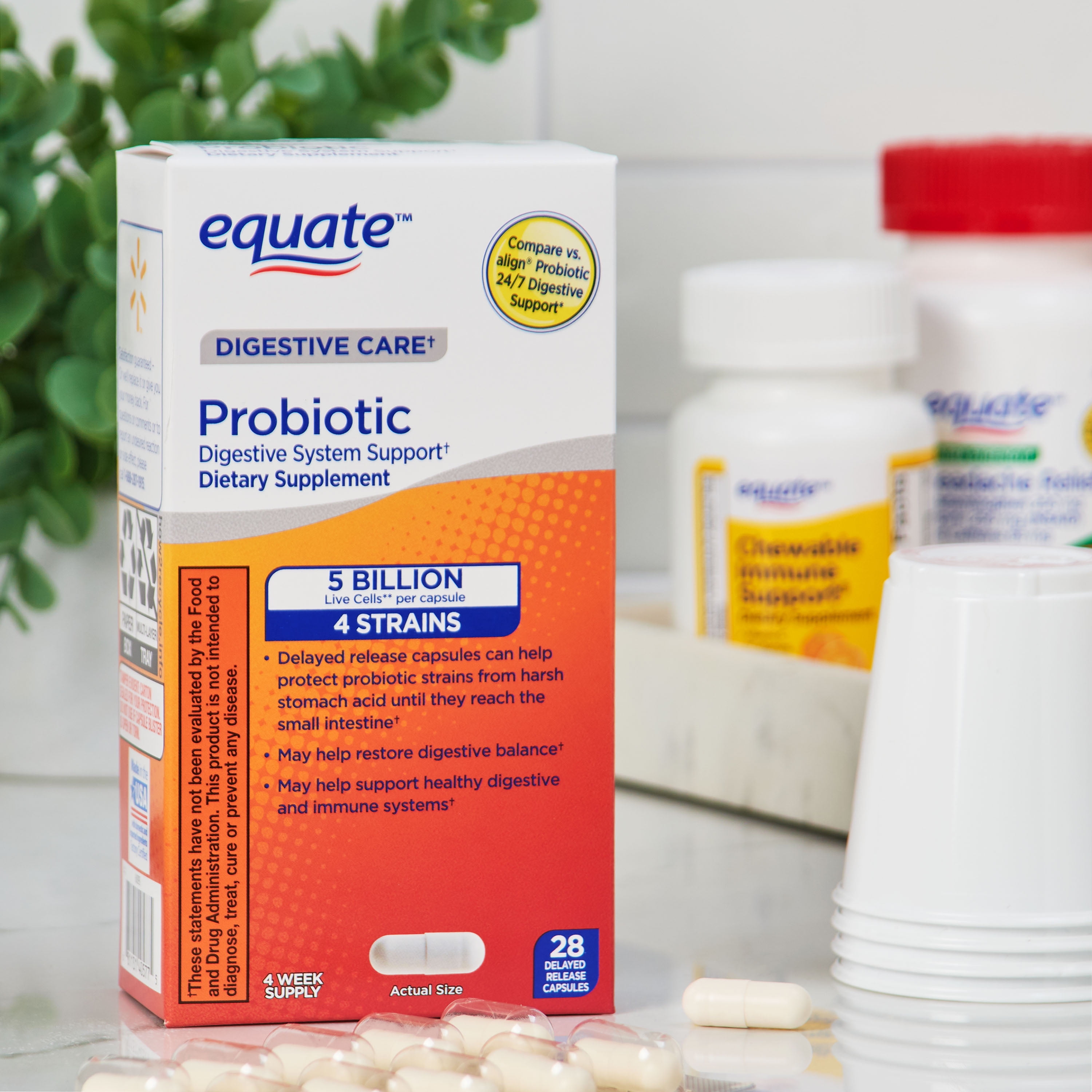 Equate Digestive Care Probiotic Digestive System Support Delayed-Release Capsules, 28 Count