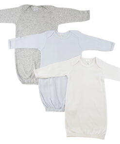 Bambini Newborn Baby Boy Lap Shoulder Infant Long Sleeve Gown (Heather Grey/Blue/White) 4-Piece