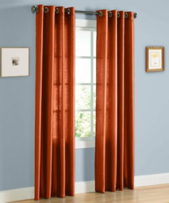 1 SET MIRA SOLID BRICK SEMI SHEER WINDOW FAUX SILK ANTIQUE BRONZE GROMMETS CURTAIN DRAPES 55 WIDE X 95′ LENGTH