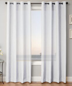1 Panel Mira Solid White Semi Sheer Window Faux Silk Antique Bronze Grommets Curtain Drapes 55 wide x 84′ length