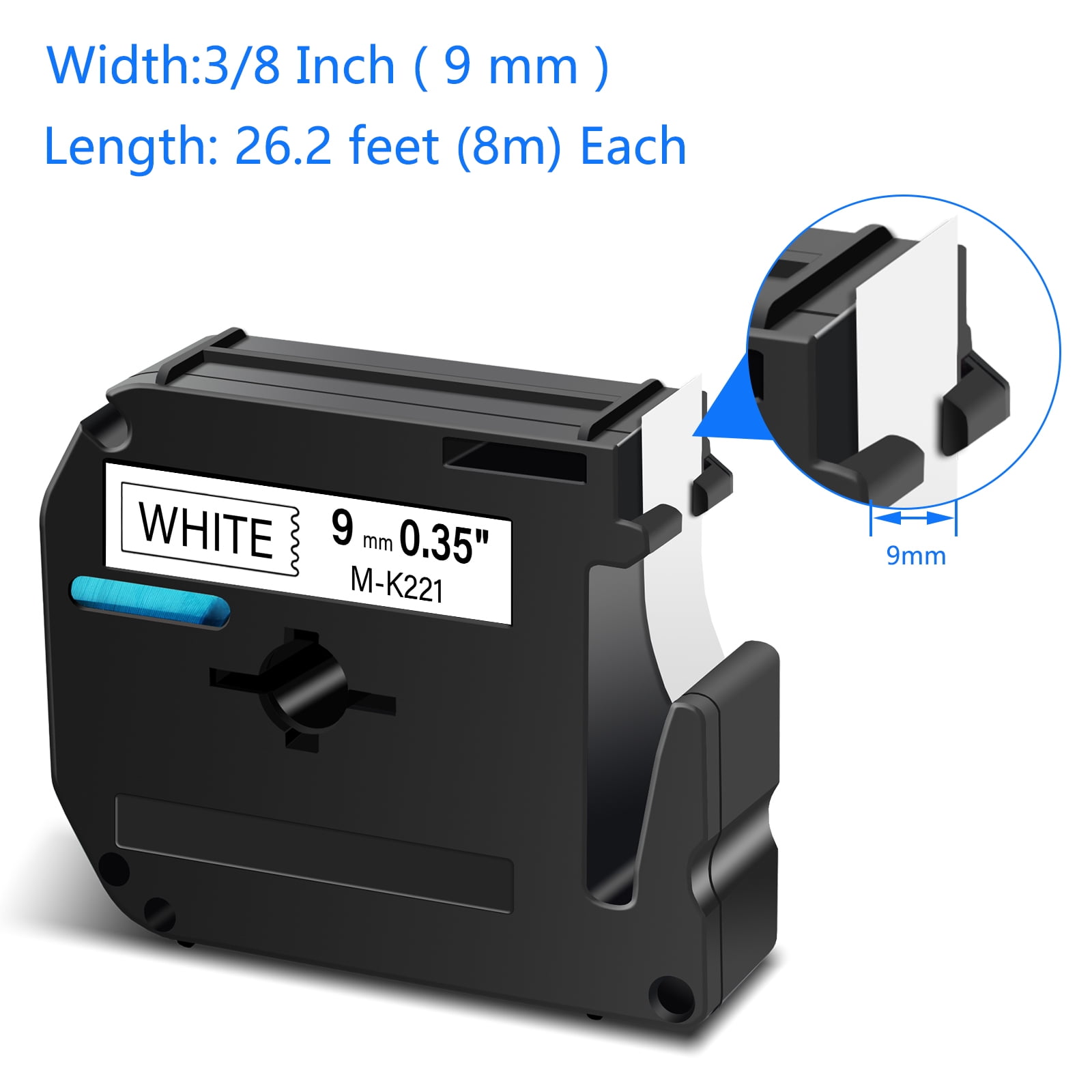 GREENCYCLE 3PK 9mm 3/8” 8m Black on White MK221 M221 M-K221 Label Tape Compatible for Brother P-touch PT-100 PT-110 PT-65 PT-70 PT-80 PT-88 PT-90 Label Maker