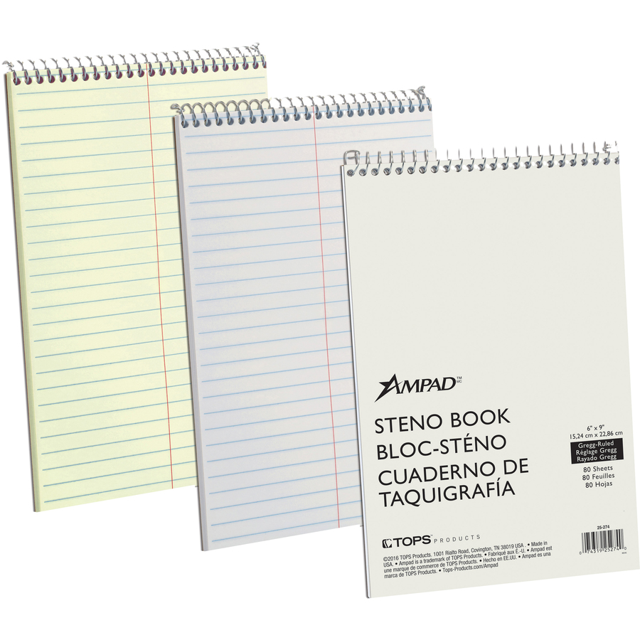6PK National 36746 Standard Spiral Steno Book, Gregg Rule, 6 x 9, Green, 80 Sheets