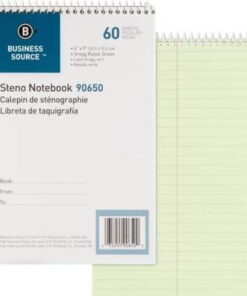 5PC Business Source Steno Notebook 60 Sheets – Coilock – Gregg Ruled – 6′ x 9′ – Green Tint Paper – Stiff-back – 1 / Each