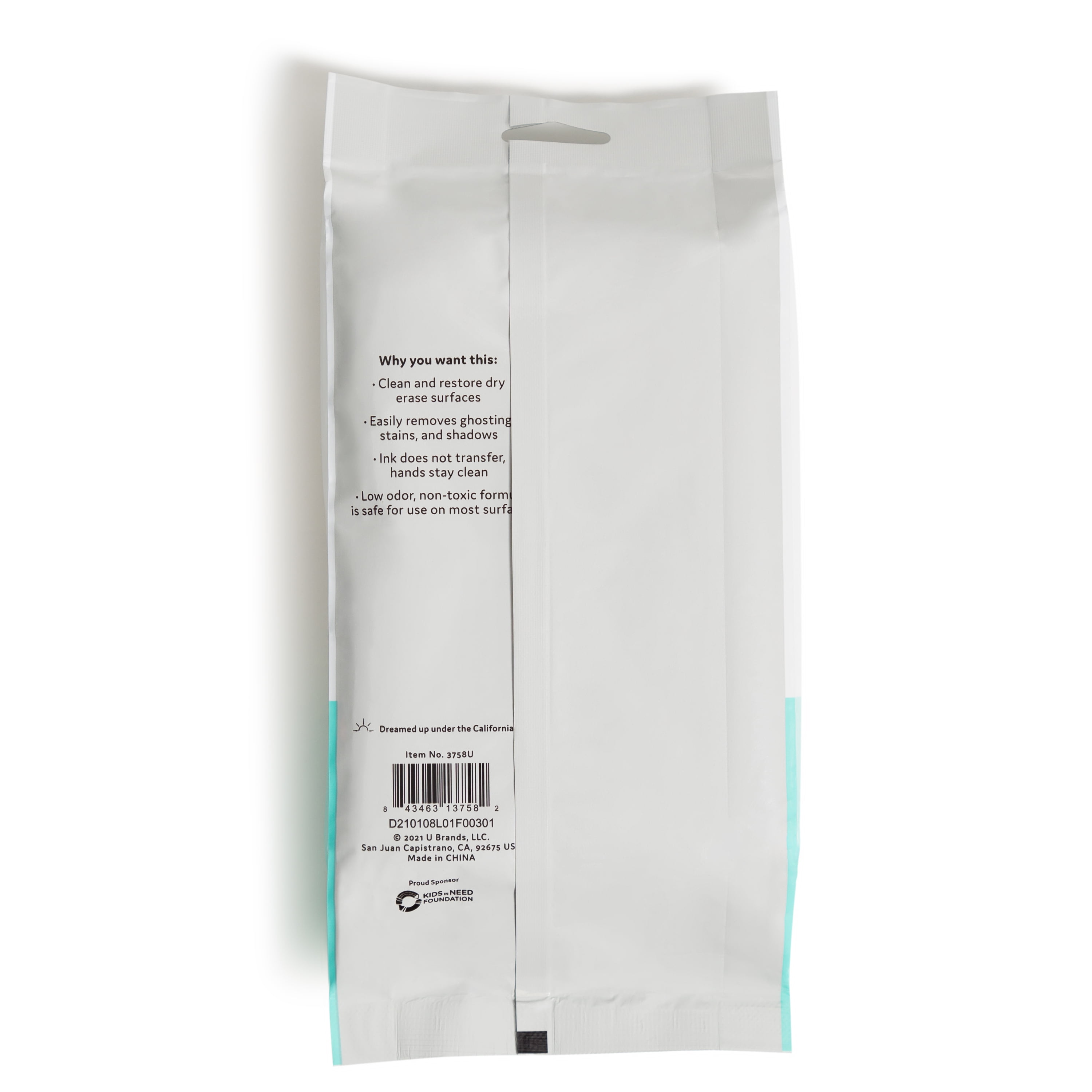 U Brands 50ct Dry Erase Board Cleaner Wipes, Whiteboards, White, 3758U