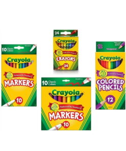 CRAYOLA BUNDLE-Crayola Crayons (24 Count), Crayola Colored Pencils in Assorted Colors (12 Count), Crayola (10ct) Classic Fine Line Markers, and Crayola (10ct) Classic Broad Line Markers