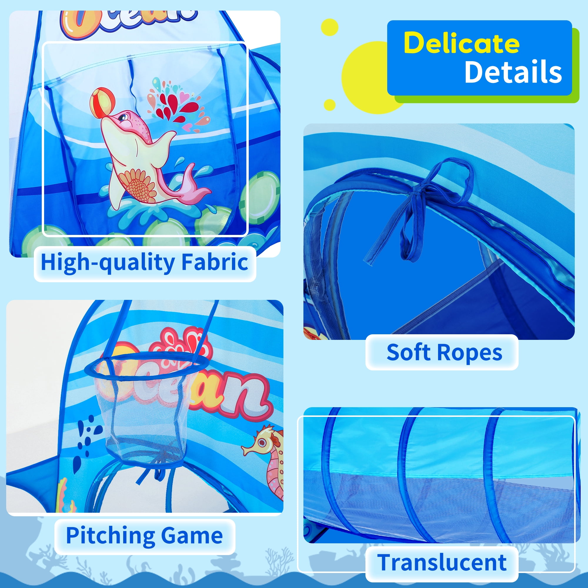 3pc Kids Tunnel Tent with Baby Ball Pit for Toddlers Boys Indoor Outdoor Pop up Polyester Playhouse