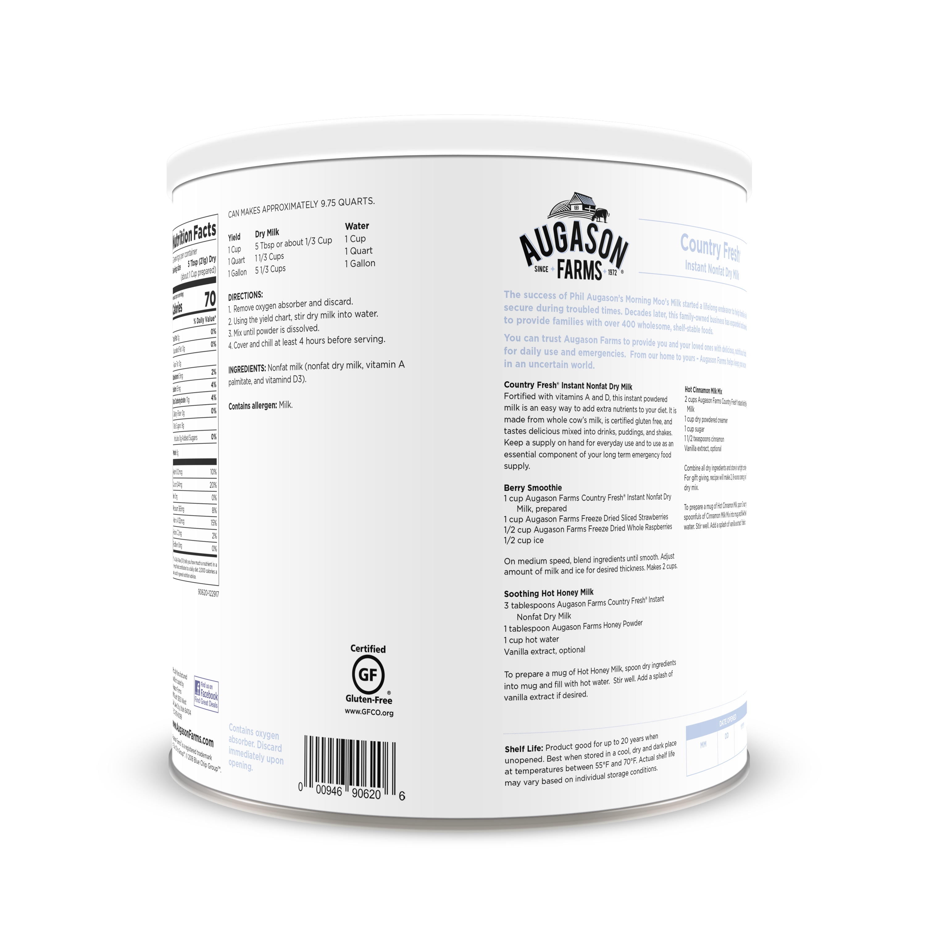 Augason Farms 100% Real Instant Nonfat Dry Milk 1 lb 13 oz