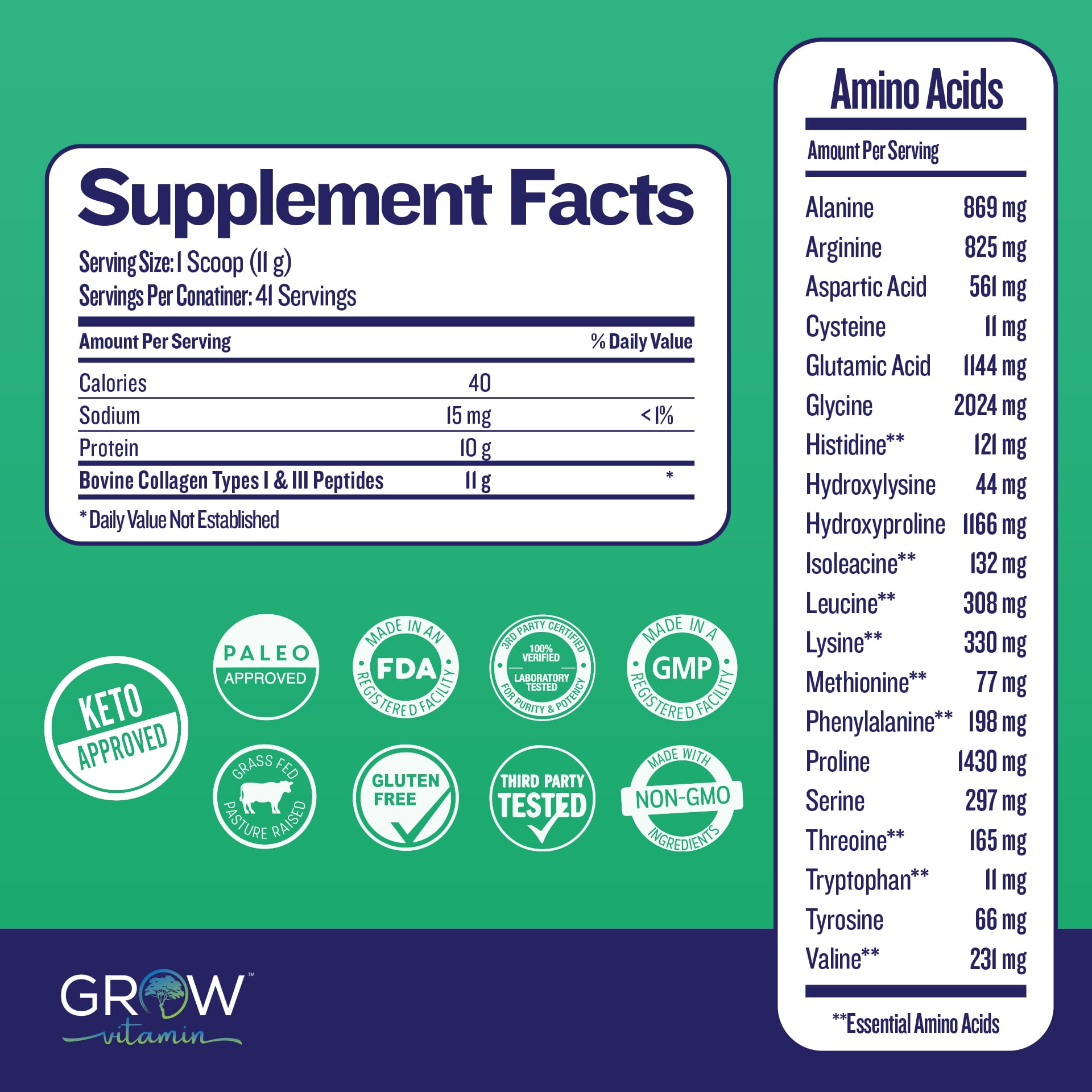 Collagen Peptides – Hair, Skin, Nail, and Joint Support – Type I & III Collagen – All-Natural Hydrolized Protein – 41 Servings – 16oz
