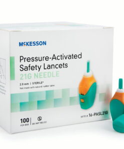 McKesson Prevent Lancet Fixed Depth Needle 1.6 mm 28 Gauge Push Button Activated, 16-PBHPSL28G1.6 – BOX OF 100