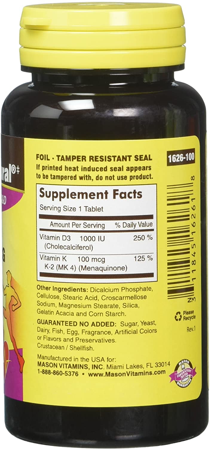 Mason Natural K2 100 mcg Plus D3 1000 IU Tablets 100 ea (Pack of 3)