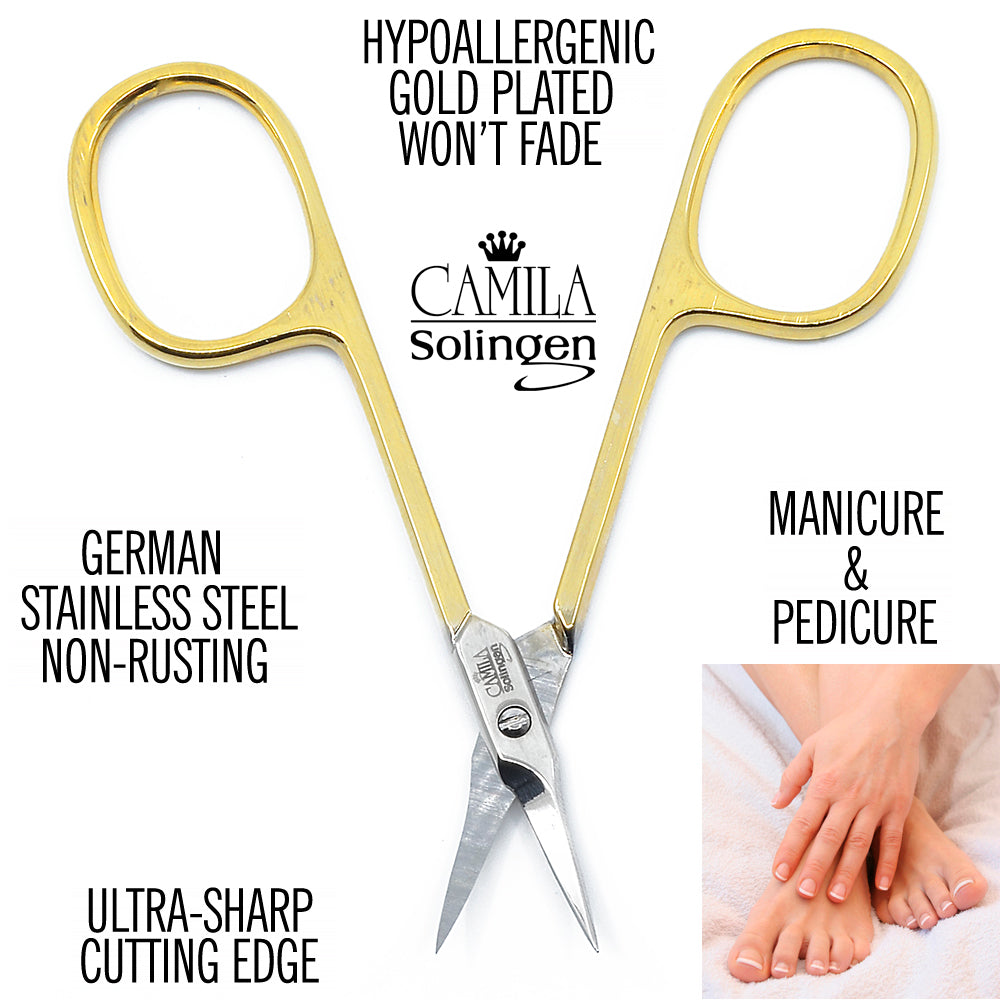 Camila Solingen 3.5′ Gold Plated Curved Precision Tip Cuticle Scissors