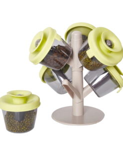 KARMAS PRODUCT Pop-up Spice Racks with Set of 6 Round Clear Storage Containers for Keeping Food,Cookie,Cracker,Coffee,Sugar,Etc. Dry and Fresh
