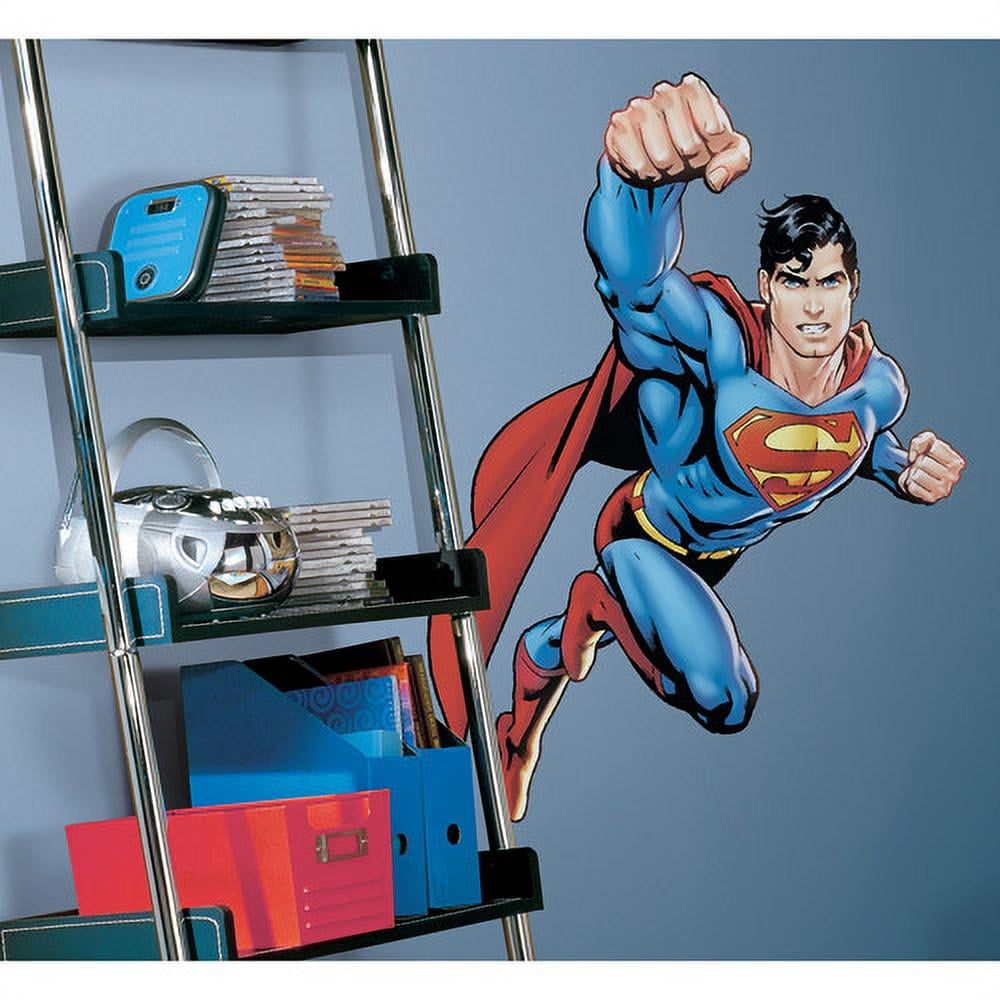 RoomMates Superman Day of Doom Blue and Red Peel and Stick Giant Wall Decals, 30.5′ Wide by 42′ Tall