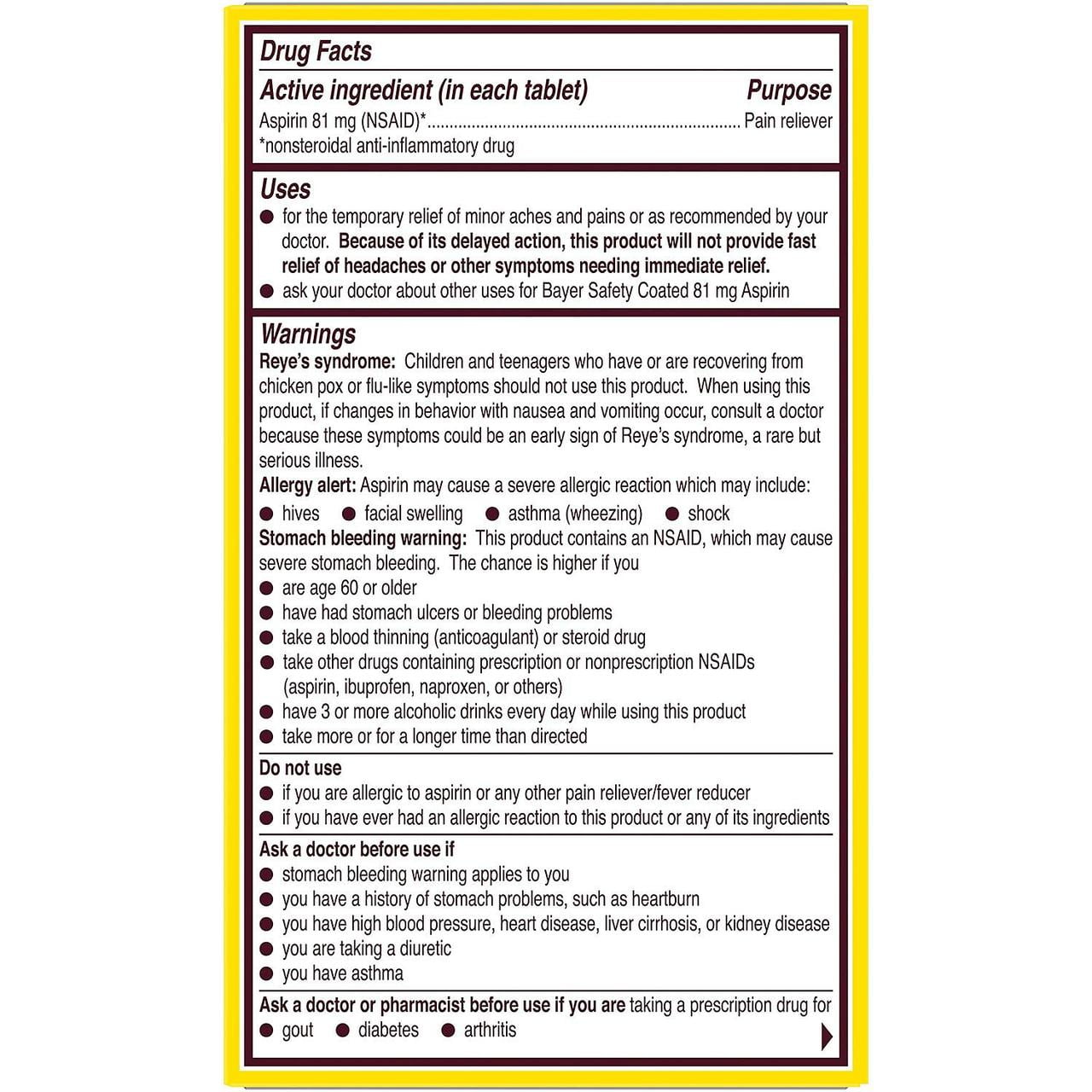 4 Pack Quality Choice Enteric Coated Lo-Dose Aspirin 81mg Tablet 365 Count Each