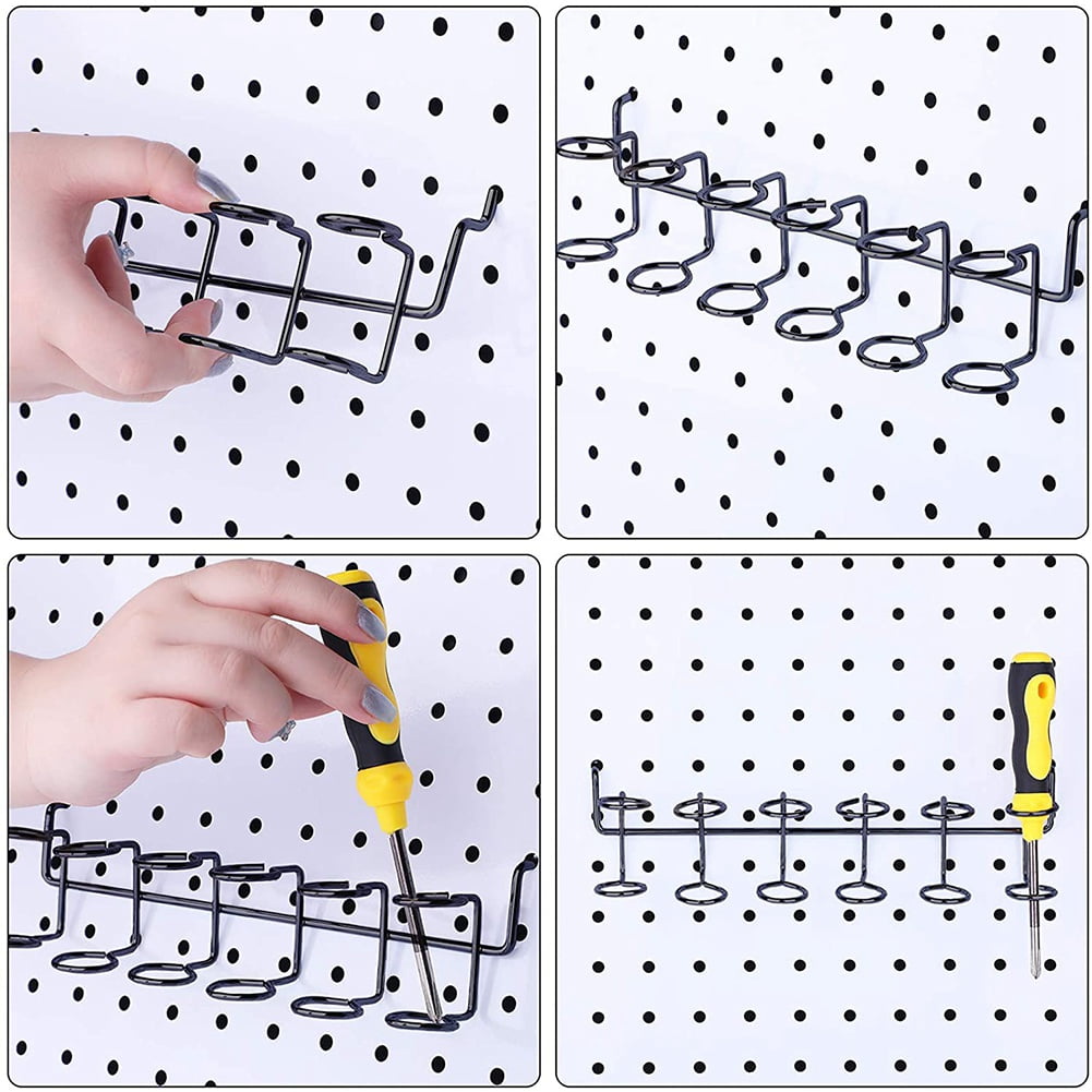 Note: Light shooting and different displays may cause the color of the item in the picture a little different from the real thing. The measurement allowed error is +/- 1-3cm.4 Pcs Screwdriver Holder Pegboard Multi-Tool Holder Accessory Pegboard Accessories Multi-Ring Tool Holder for Pegboard