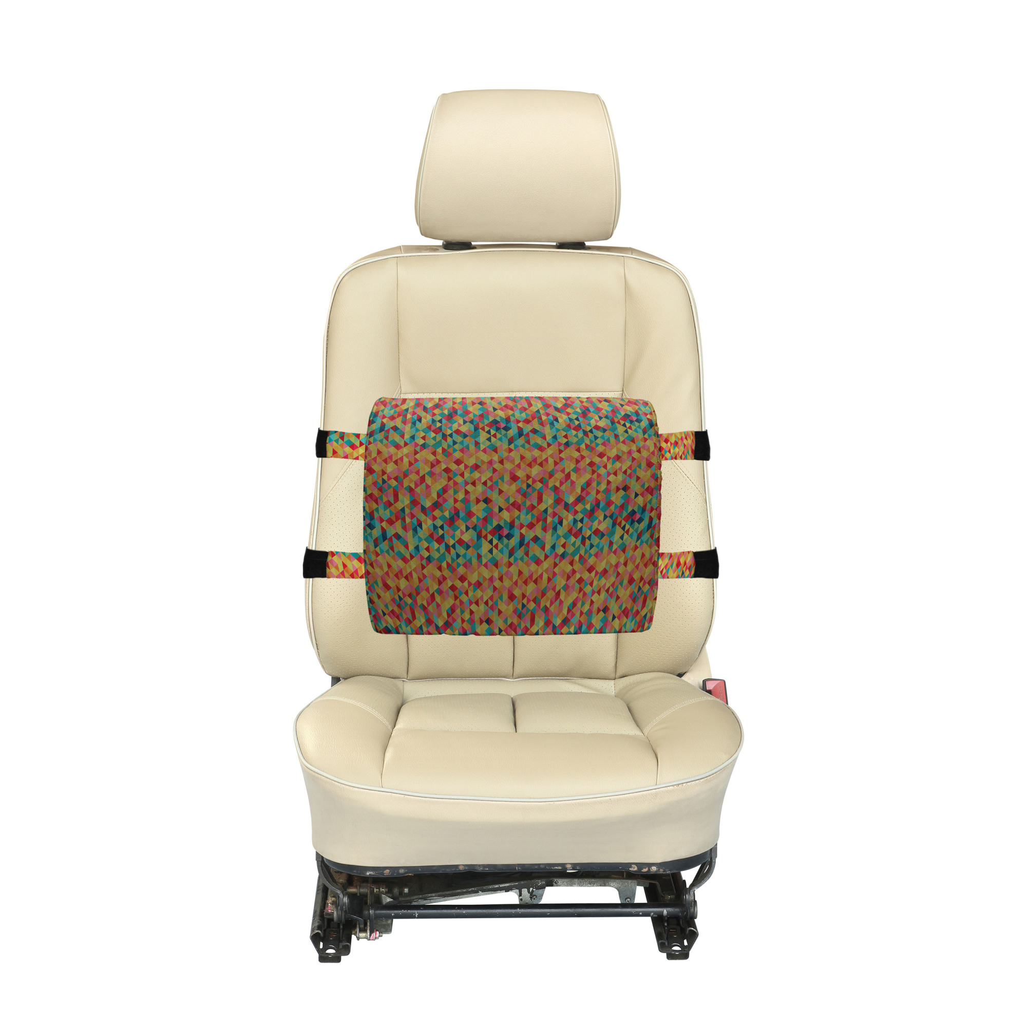 Measurements – 14.1" Long x 13.3" Wide x 3.9" High. Our lumbar support pillows provide ultimate comfort. Made from – Premium viscoelastic memory foam with fabric cover. Fits a range of seats and chairs. Features – Has adjustable straps with buckles. Zippered machine washable cover. Machine washable. Versatile – Can be used with gaming chair, sofa, couch, car seat, truck, wheelchair and recliner. Printed – With state-of-the-art digital printing technology. Long-lasting bold colors & clear image. Are you working long hours at a desk/from home, spending too much time on the road, or just feeling exhausted from poor posture? Then treat yourself by simply turning your chair into the comfiest seat cushion ever and adapt your work/travel station to the most ergonomic setup ever! The back cushion comes with a viscoelastic memory foam interior and zippered outer cover. The open cell structure of the foam encourages airflow so keeps the hips at an ideal temperature. Quickly recovers to the original shape after use. When placed towards the back of the chair, its shape keeps you back in a pressure-free position. Produced from 100% polyester faux suede, the cover keeps the cushion in place and protects it from stains. Breathable. It keeps you cool in summer and hot in winter. The cover is machine washable on a cold water cycle. Tumble dry is not recommended. Thanks to its lightweight and spongy nature, you can take comfort to the next level where you want, at home, in a car, or at work. It can be considered a perfect gift idea for your grandparent, for your wife or husband who wants to feel comfy at the desk, for your mother, father, or for your girlfriend/boyfriend who wants to fix the posture. Please do not forget to check your chairs’ width before purchasing.Abstract Lumbar Pillow, Triangle Formed Fractal Geometric with Aztec Culture Effects Western Print, Soft Back Cushion for Office Chairs with Adjustable Straps, 14" x 13", Multicolor, by Ambesonne