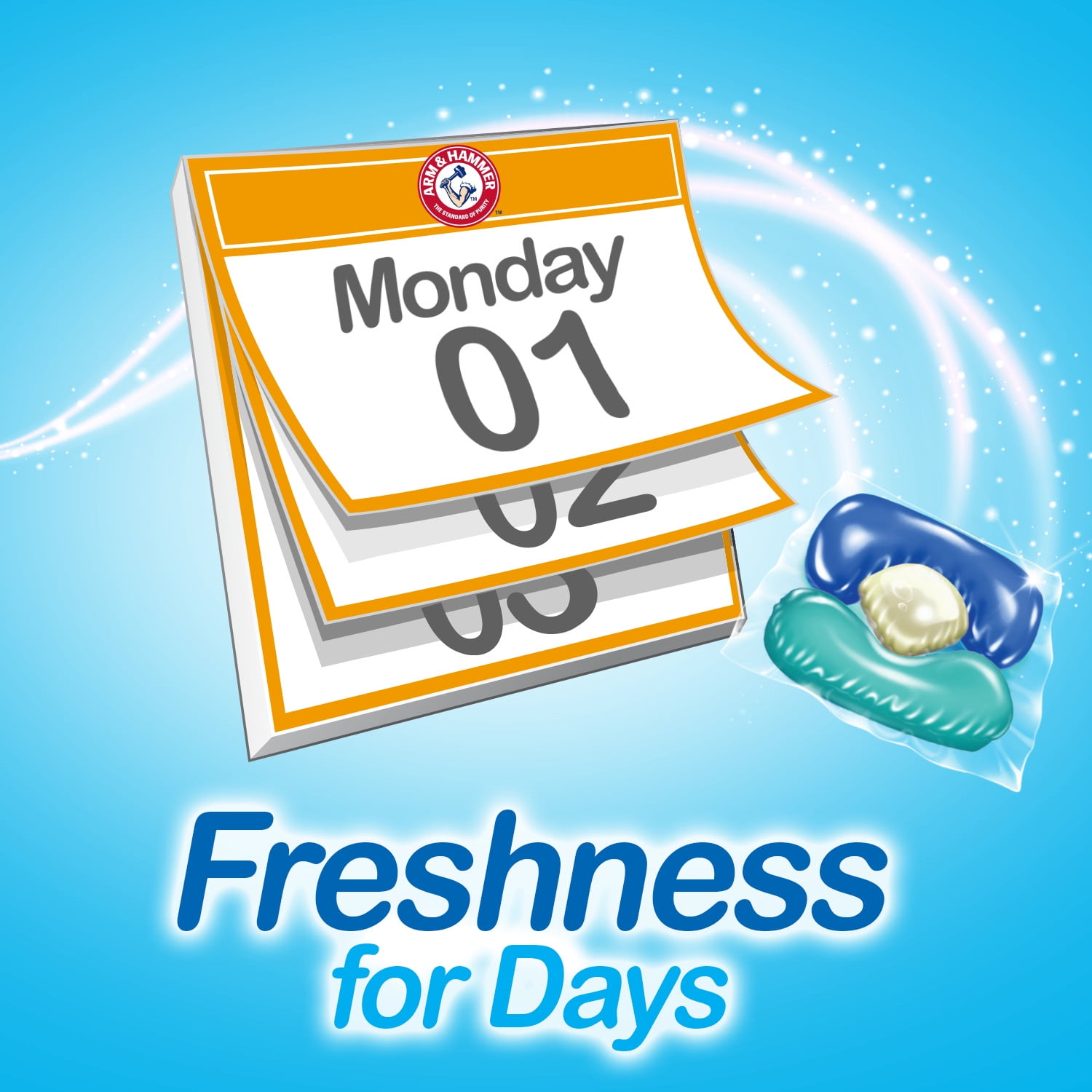 Concentrated laundry detergent that provides a powerful clean and a long-lasting burst of freshness in a convenient, pre-measured unit dose form is what you get each time you wash a load with ARM & HAMMER 5-in-1 Clean Burst Power Paks. With no mess, measuring or spills, this concentrated detergent in a convenient Power Pak form works in both standard and High Efficiency (HE) washing machines to combine deep-cleaning detergent with ARM & HAMMER freshness. Our 5-in-1 RAPIDLY-dissolving Power Paks provide freshness for days, contain an active scent boost, whiten whites, brighten colors and combat odors to ensure a powerful clean. The ALL-LIQUID formulation combats odors and blasts away tough dirt and stains for a powerful, efficient, and long-lasting clean that leaves a burst of fragrance. Get ultra-concentrated cleaning power in this convenient pre-measured dose of laundry detergent designed to work in all temperatures, including cold water, and all machines. Drop one in today!