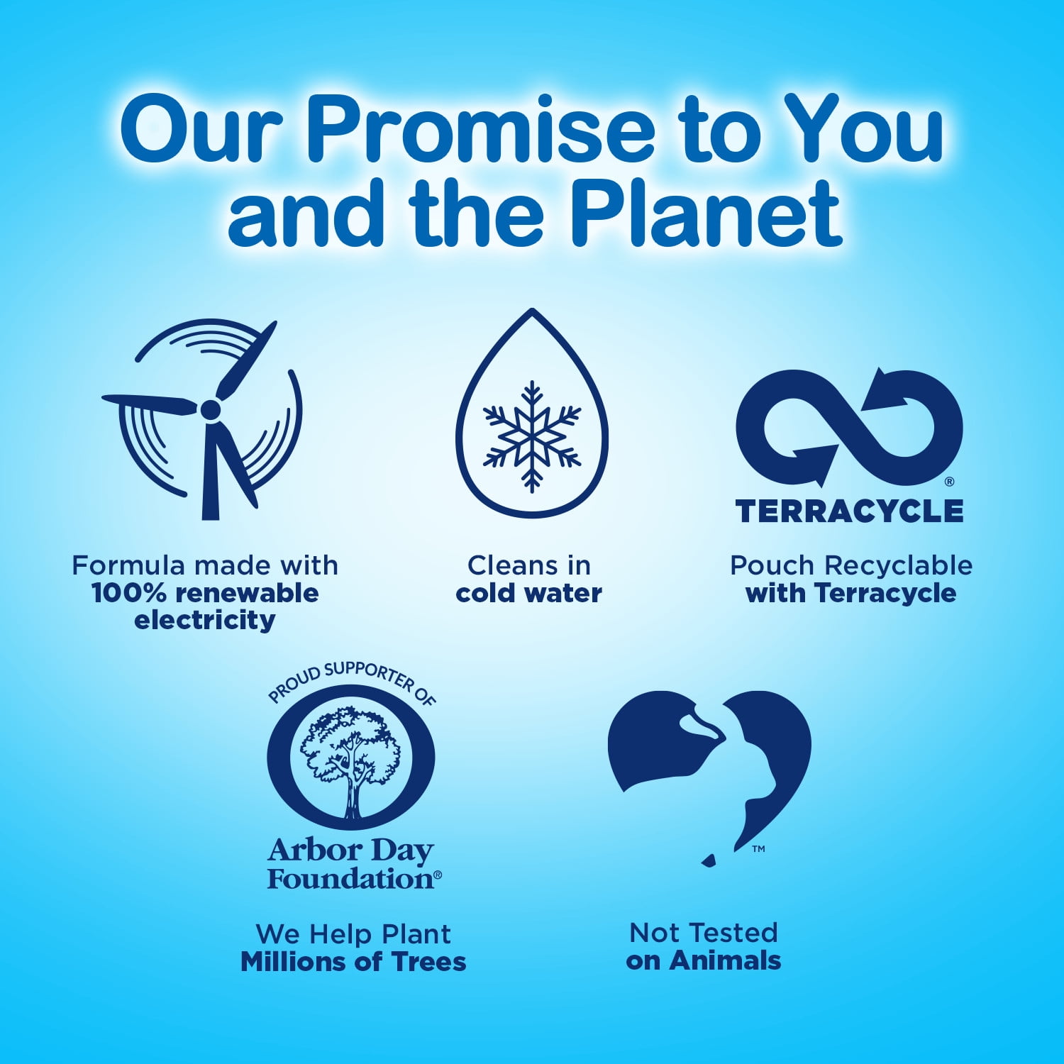 - ENVIRONMENTALLY-CONSCIOUS MANUFACTURING METHODS AND PACKAGING. We’re making a promise to you and Mother Earth. Our all-liquid formula is made with 100% renewable electricity. The Clean Burst 5-in-1 pouch is recyclable via Terracycle, and in partnership with the Arbor Day Foundation we help plant millions of trees. This product is NOT tested on animals.
