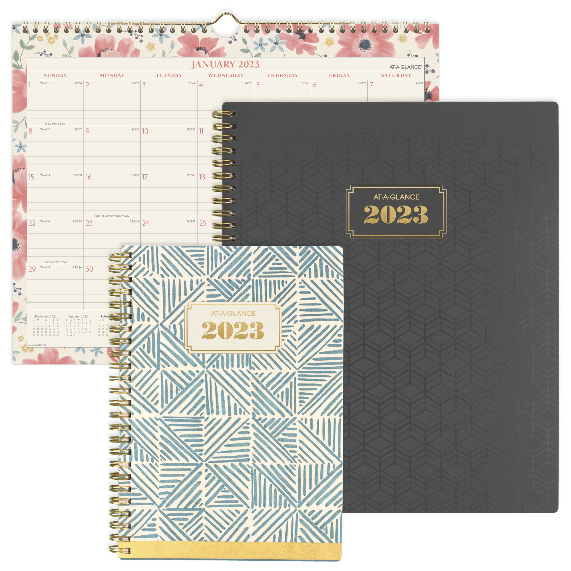 - Hand-drawn geometric pattern for modern style. Planner covers 13 months from January 2023 – January 2024 with Julian dates. Guaranteed to last all year.*