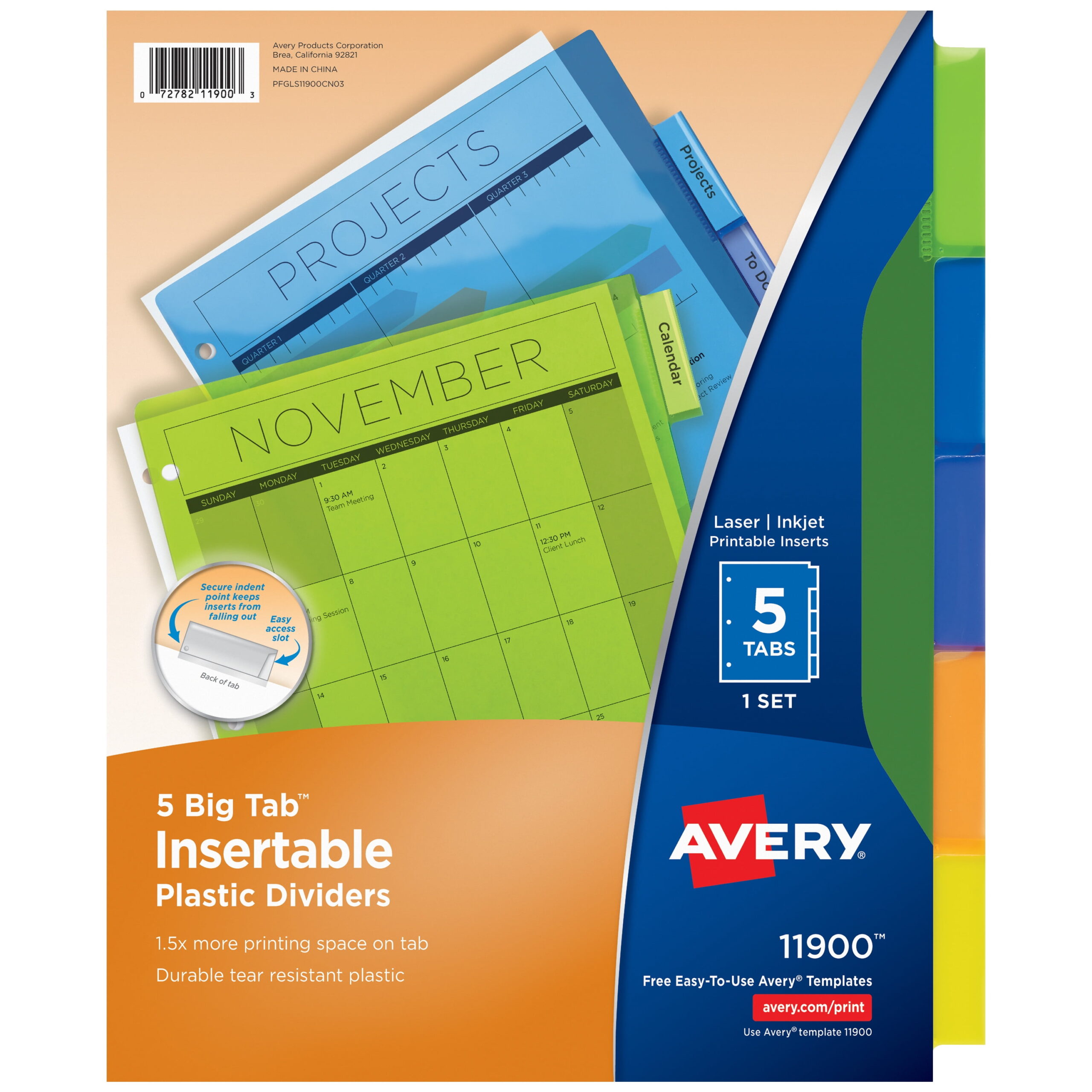 Avery Big Tab Insertable Plastic Dividers, 5-Tab Set, Multicolor
