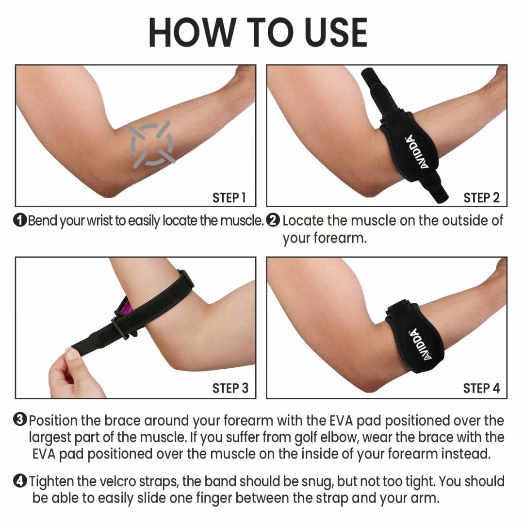 AVIDDA 2 Pack Tennis Elbow Brace with Compression Pad for Women and Men Golfers Elbow Brace for Tendonitis Weightlifting Pain Relief