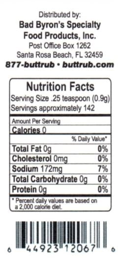 Bad Byron’s Butt Rub Barbeque Seasoning is an all purpose seasoning Rub. A serious product with a funny name! Our grass roots seasoning was created out of a love for BBQ and BBQ competitions. Butt Rub has become is one of the most versatile and popular all purpose seasonings on the market. Bad Byron’s Butt Rub is the perfect balance of spices and herbs for Pork, Beef, Chicken, Fish, Shrimp, Vegetables and even Popcorn. Not just for Barbeque. After all "a little butt rub makes everything better". All Natural, No Sugar, No MSG, Gluten Free and KosherBarbeque Rub- All Purpose Seasoning-Perfect Balanced Blend of Herbs and Spices-Born of Competition Barbeque Championships-Great on All Meats, Seafood, Vegatables, Eggs and Popcorn. All Natural-No Sugar-No MSG-No Gluten- Bad Byron’s Butt Rub has become a favorite all purpose seasoning