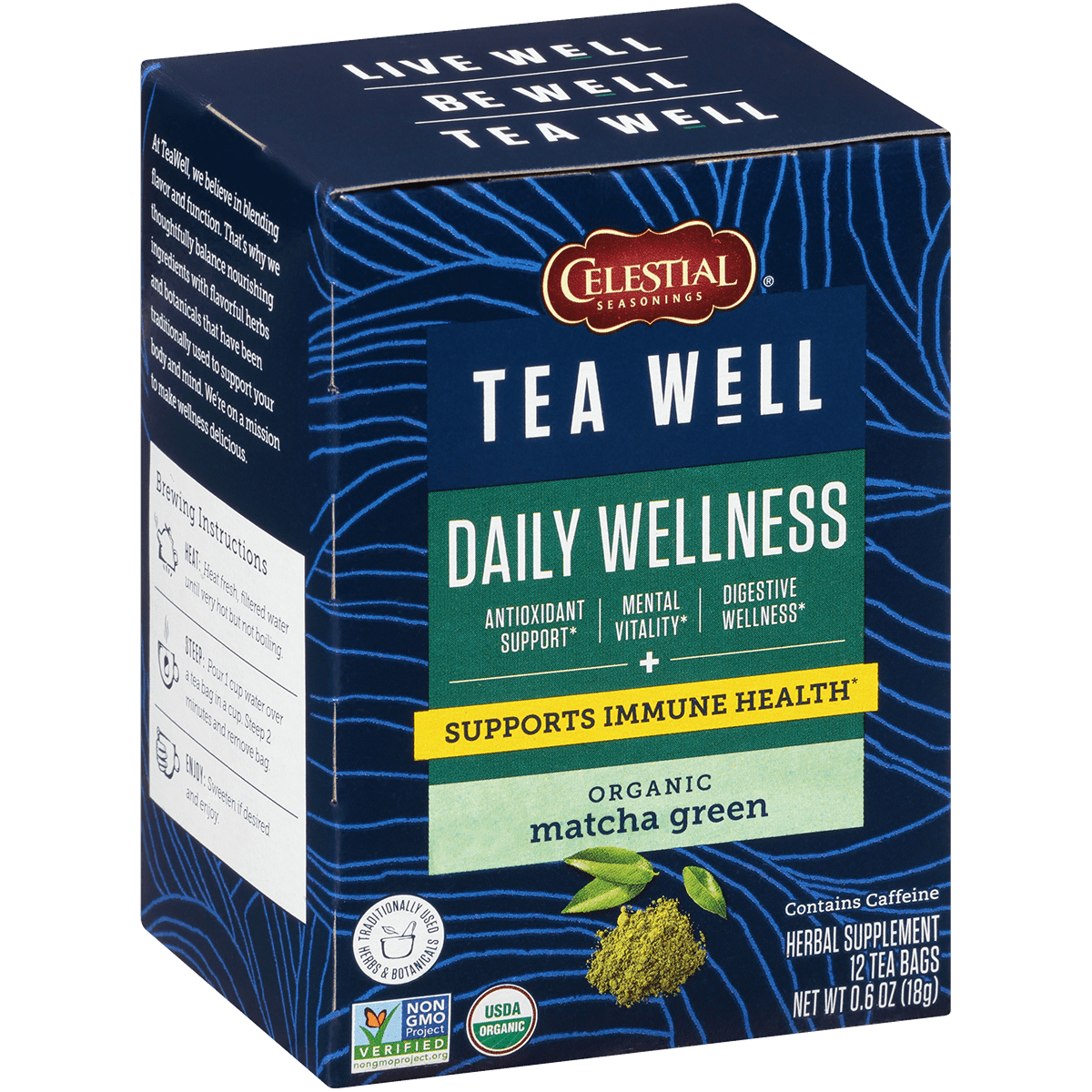 Celestial Seasonings TeaWell Organic Matcha Green Daily Wellness Tea Bags, 12 Ct