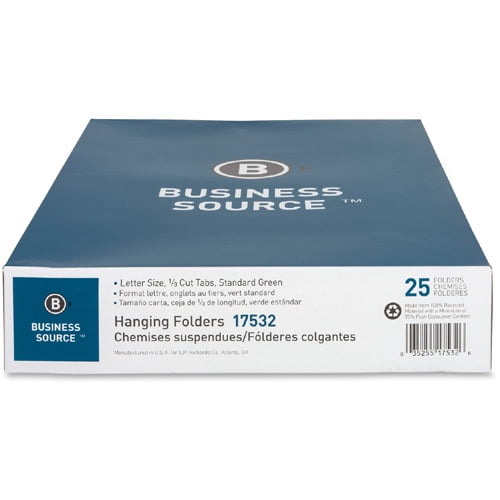 Hanging folders are made with a high percentage of recycled material for the eco-friendly office. The top edges have 1/3-cut slots so you can stagger the included tabs and inserts for quick label identification. Acid-free folders are made with 11 point stock and hold your letter-size documents for efficient organizing.